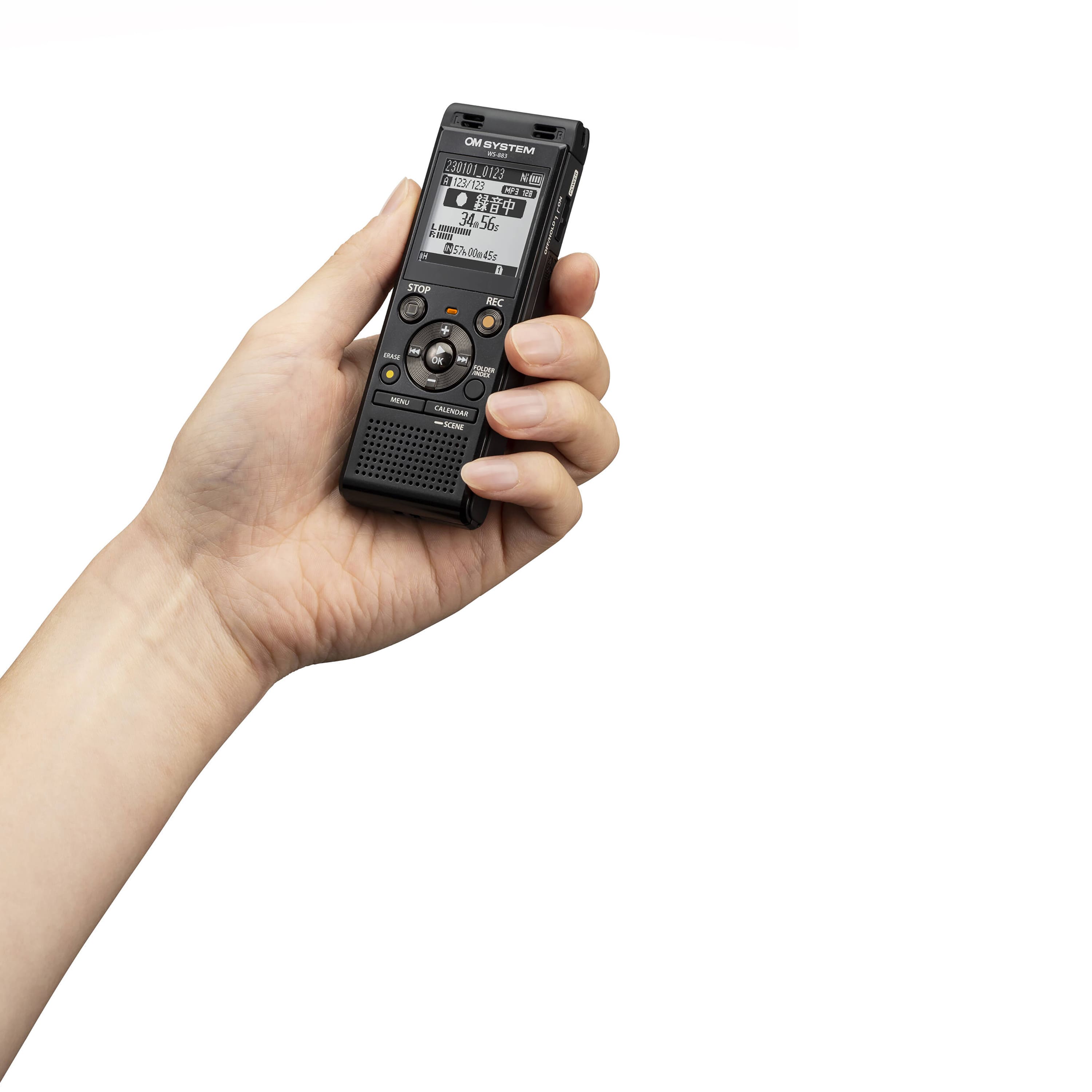 - A:Answer The WS-883 Digital Voice Recorder has a width of 1.54 inches, a length of 0.71 inches, and a height of 4.39 inches.