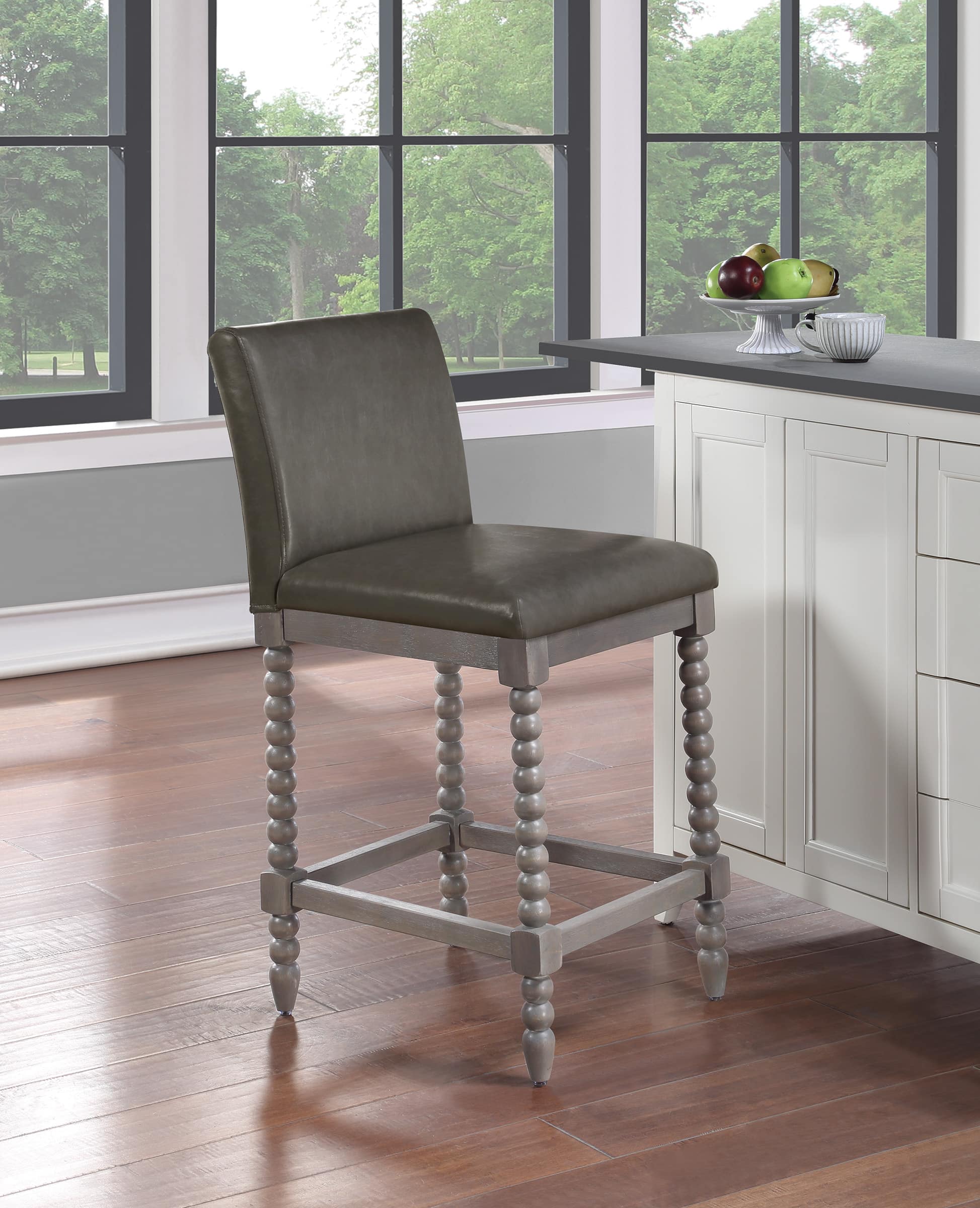 - A:Answer The Abbott 26" Spindle Stool has a width of 19.25 inches, a depth of 22.5 inches, and a height of 39 inches.