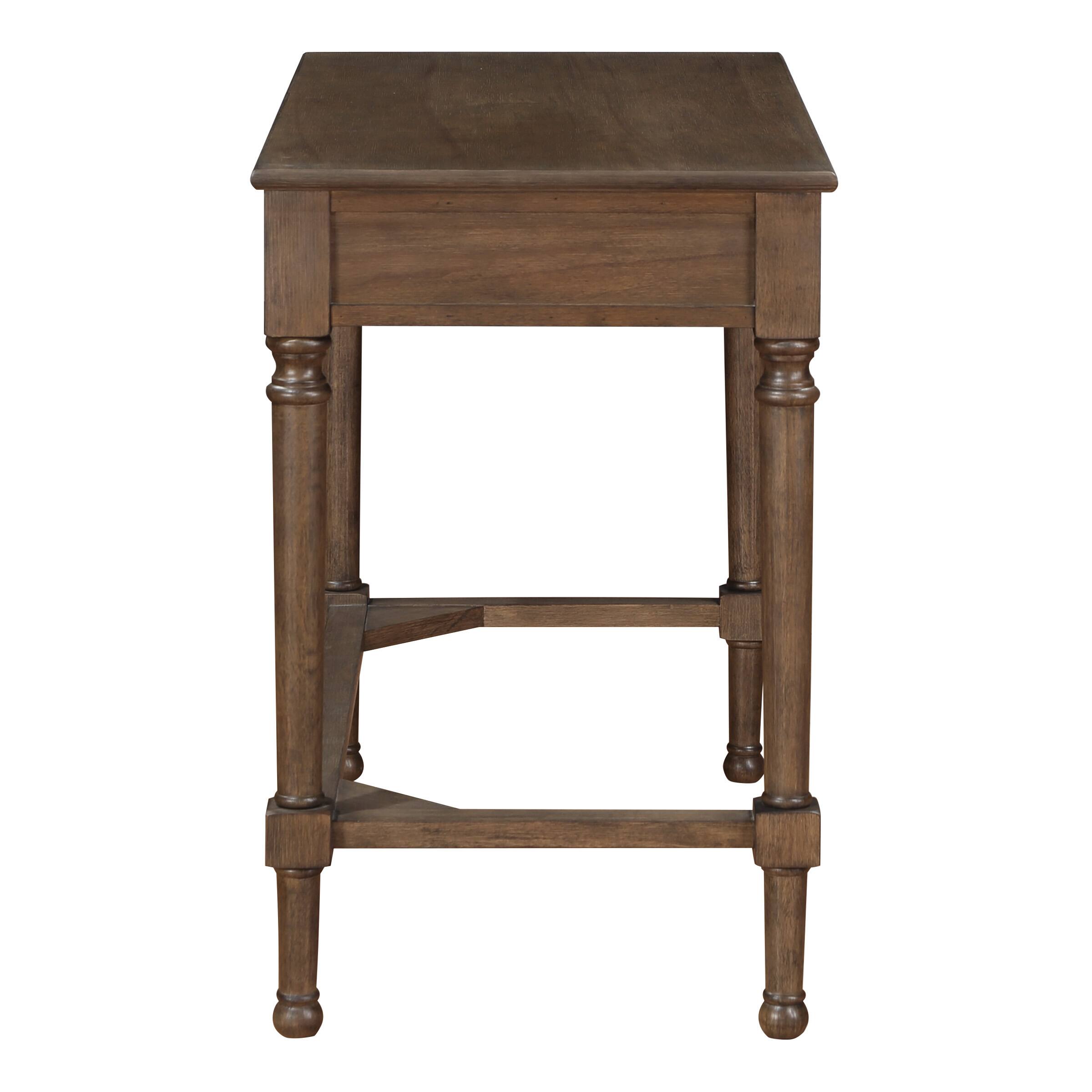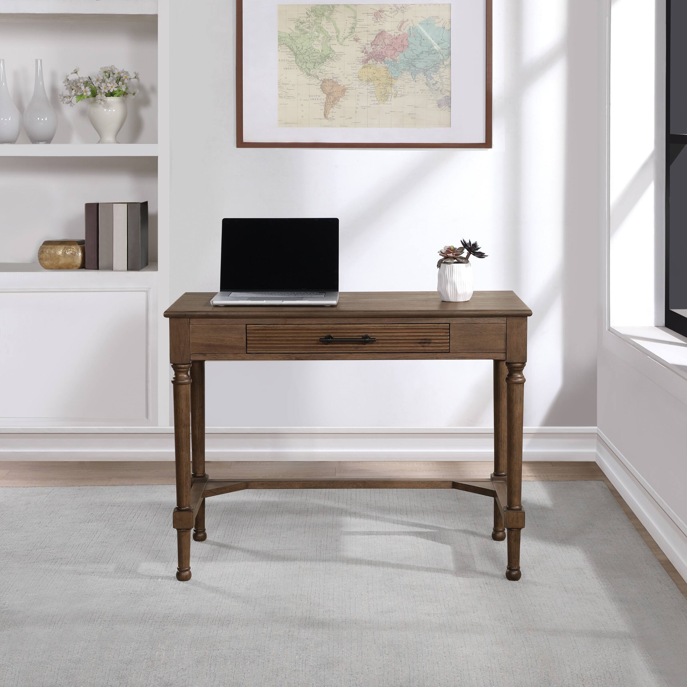 - A:Answer The Marna Writing Desk has one large drawer for accessories.