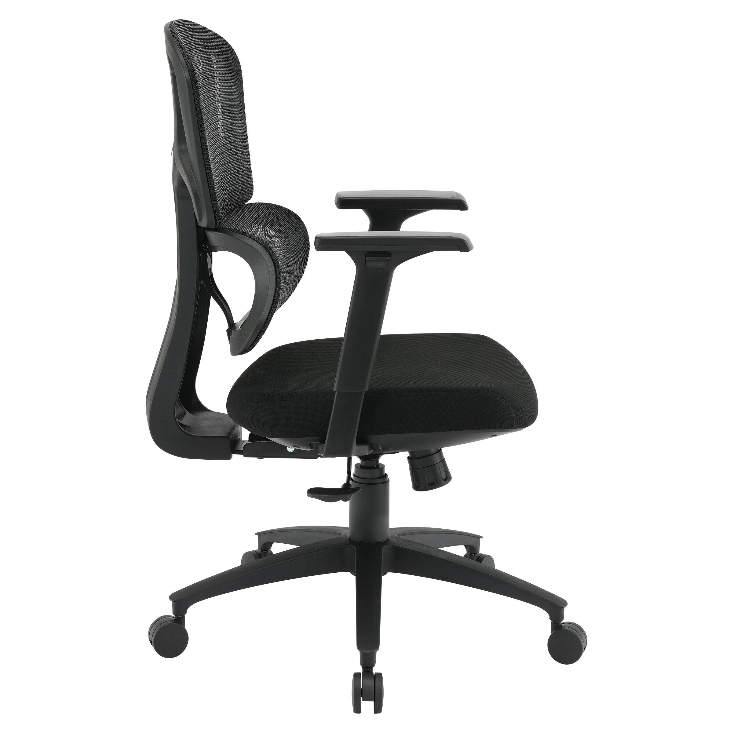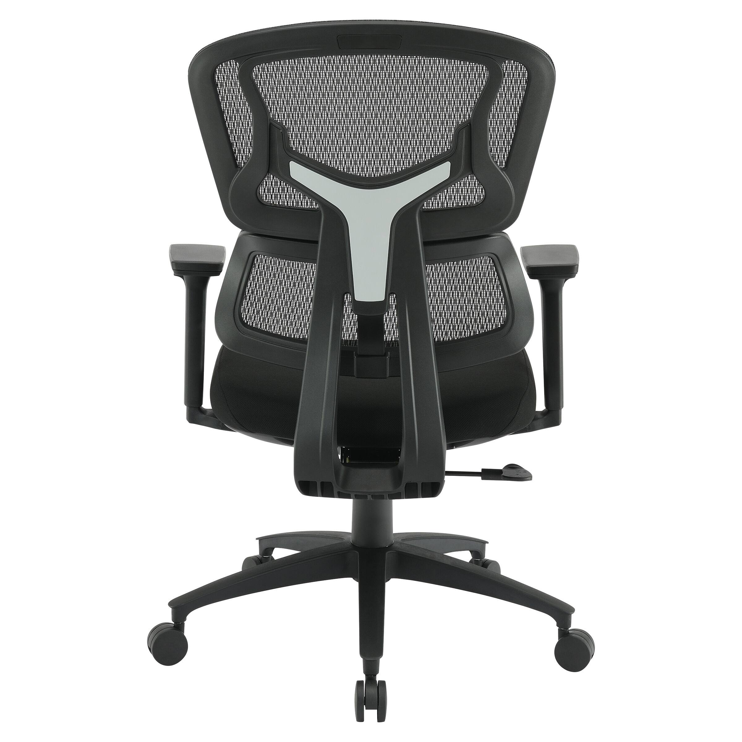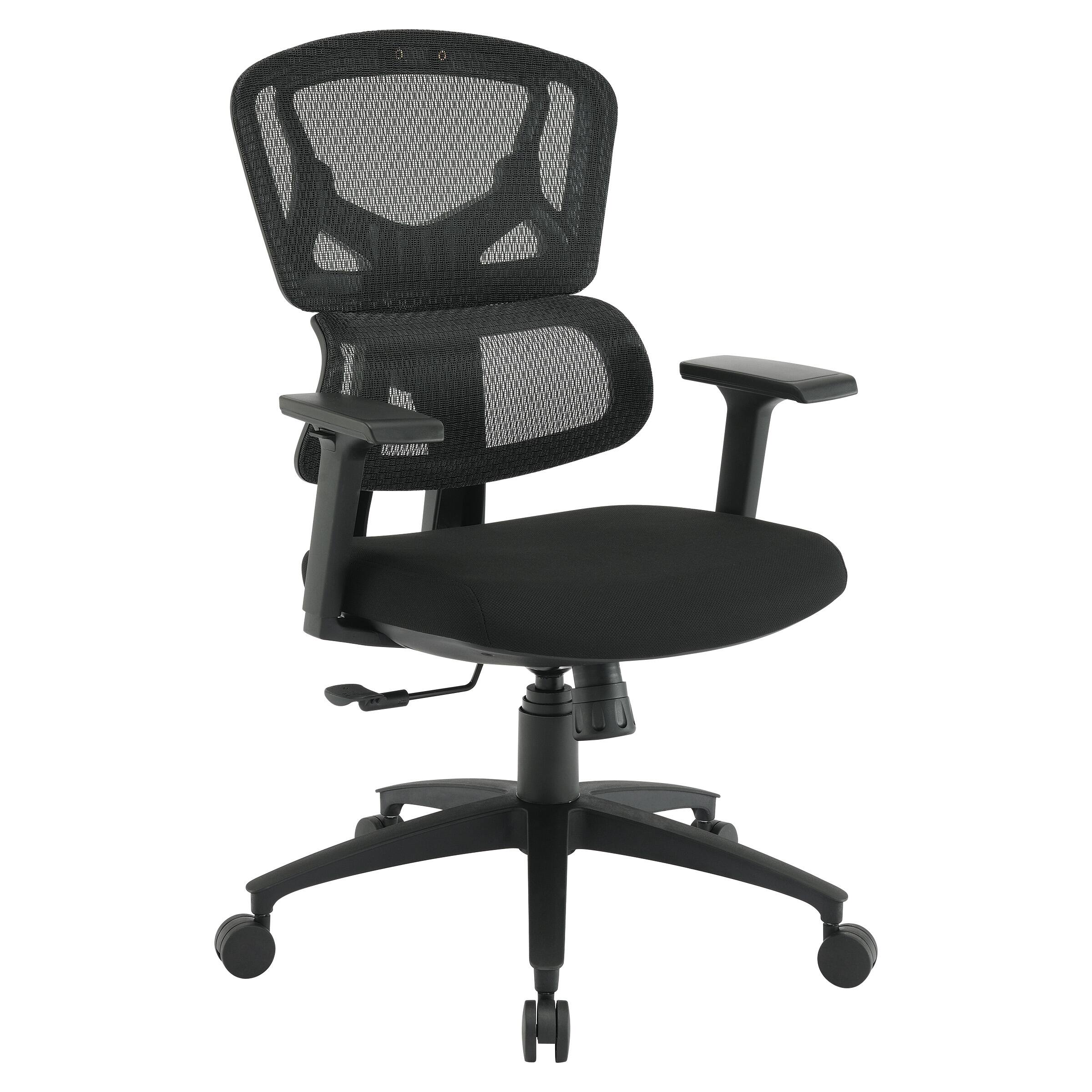 - A:Answer This chair features a breathable mesh back with built-in lumbar support and padded fabric seat.