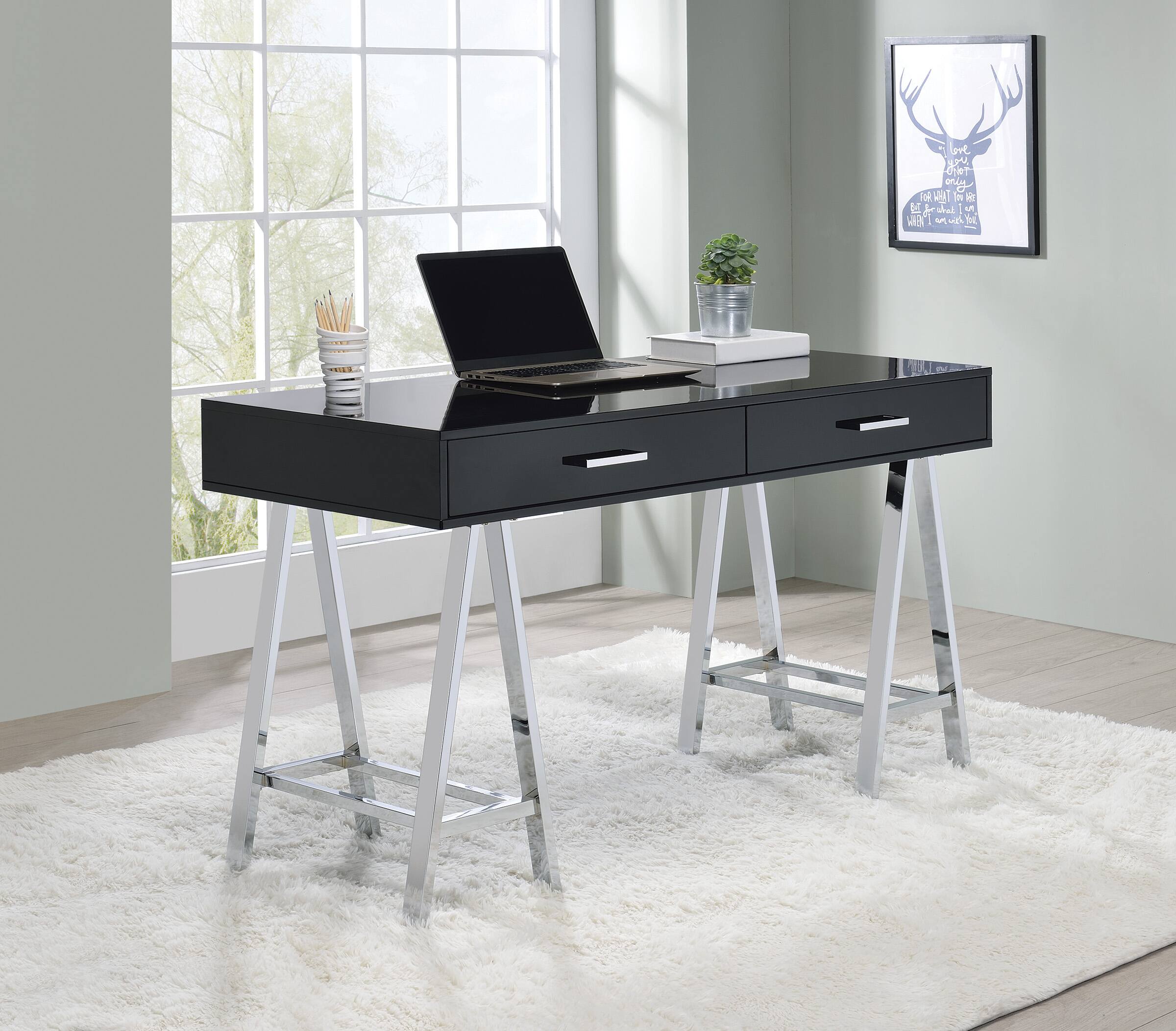 OSP Home Furnishings - Vivid 2 Drawer Desk - Black/Chrome