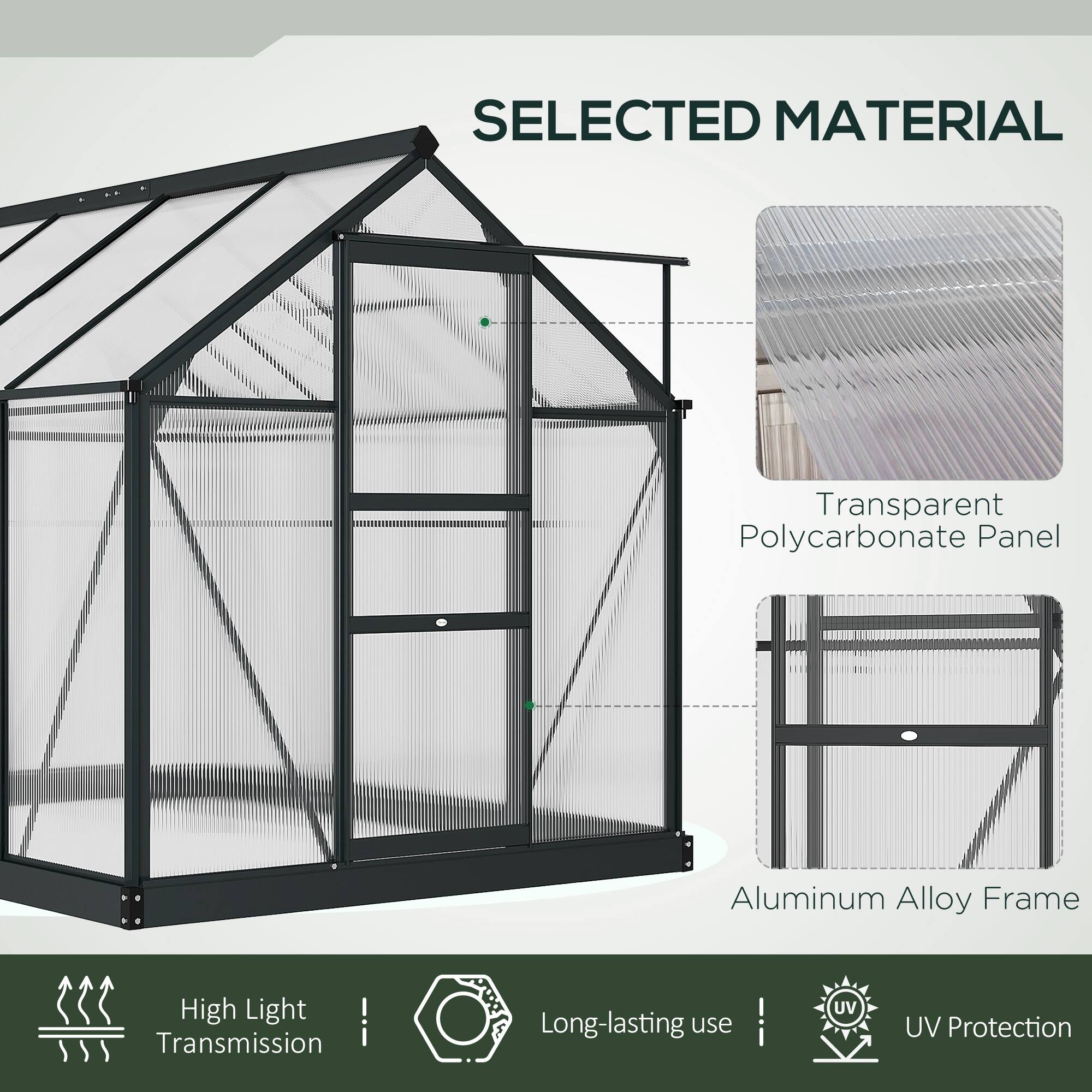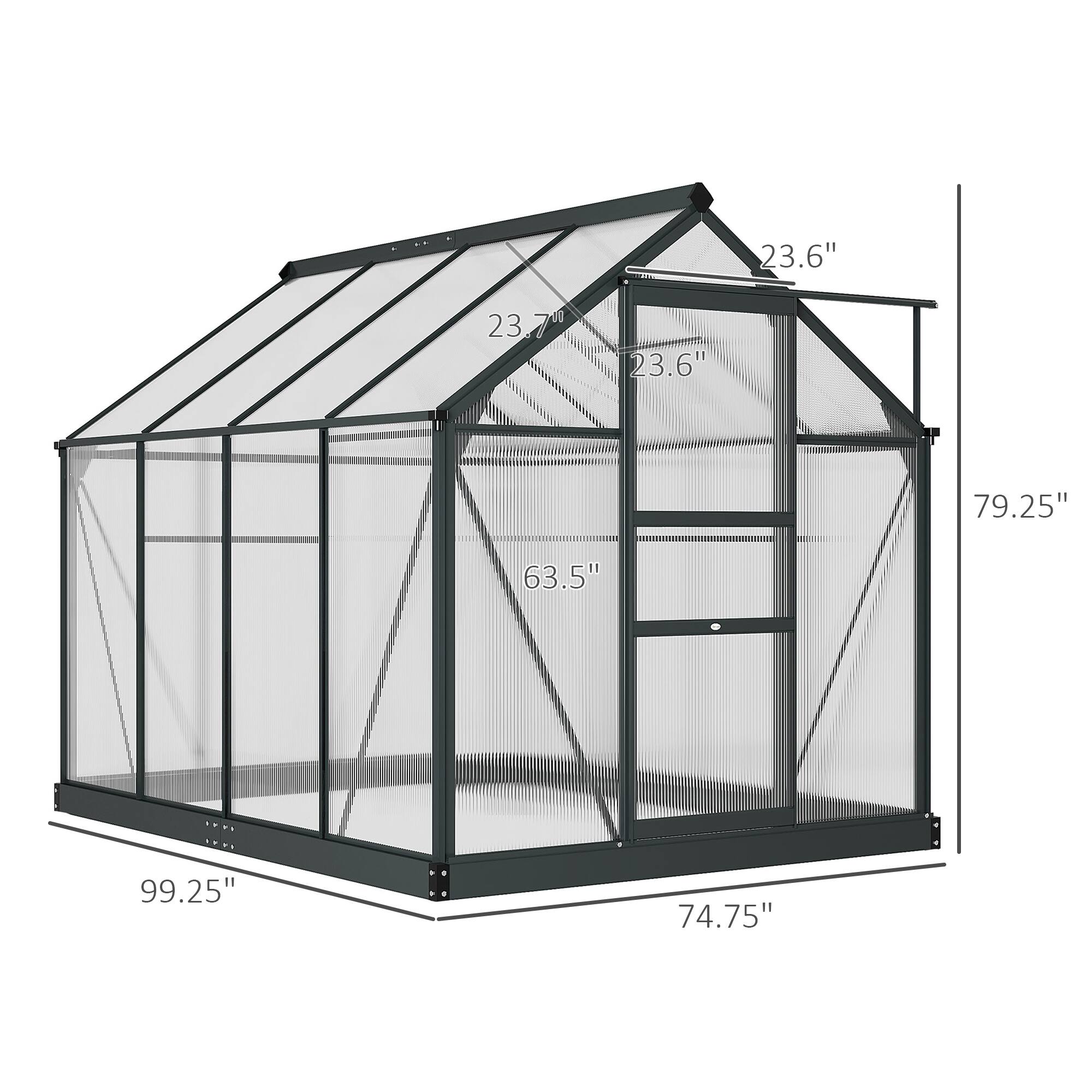 Outsunny - 6' x 8' Greenhouse for Outdoors, Polycarbonate Greenhouse with Rain Gutter and Roof Vent, Aluminum Walk-in Green House