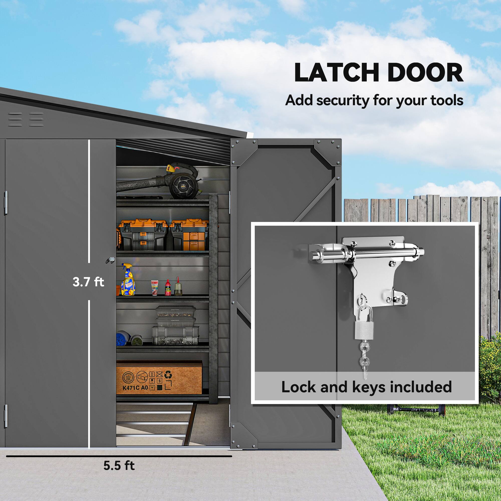 Outsunny - x 9' Outdoor Storage Shed, Lean to Metal Shed with Foundation Kit, Lockable Doors and Gloves for Patio, Lawn