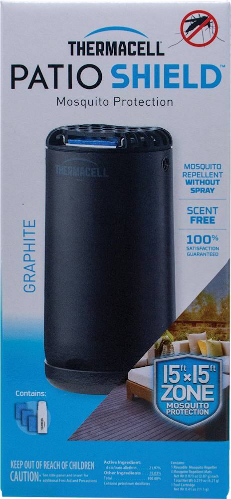 - A:Answer The Thermacell Patio Shield does not require assembly because it comes with a fuel cartridge and repellent mats, ready to use out of the box.