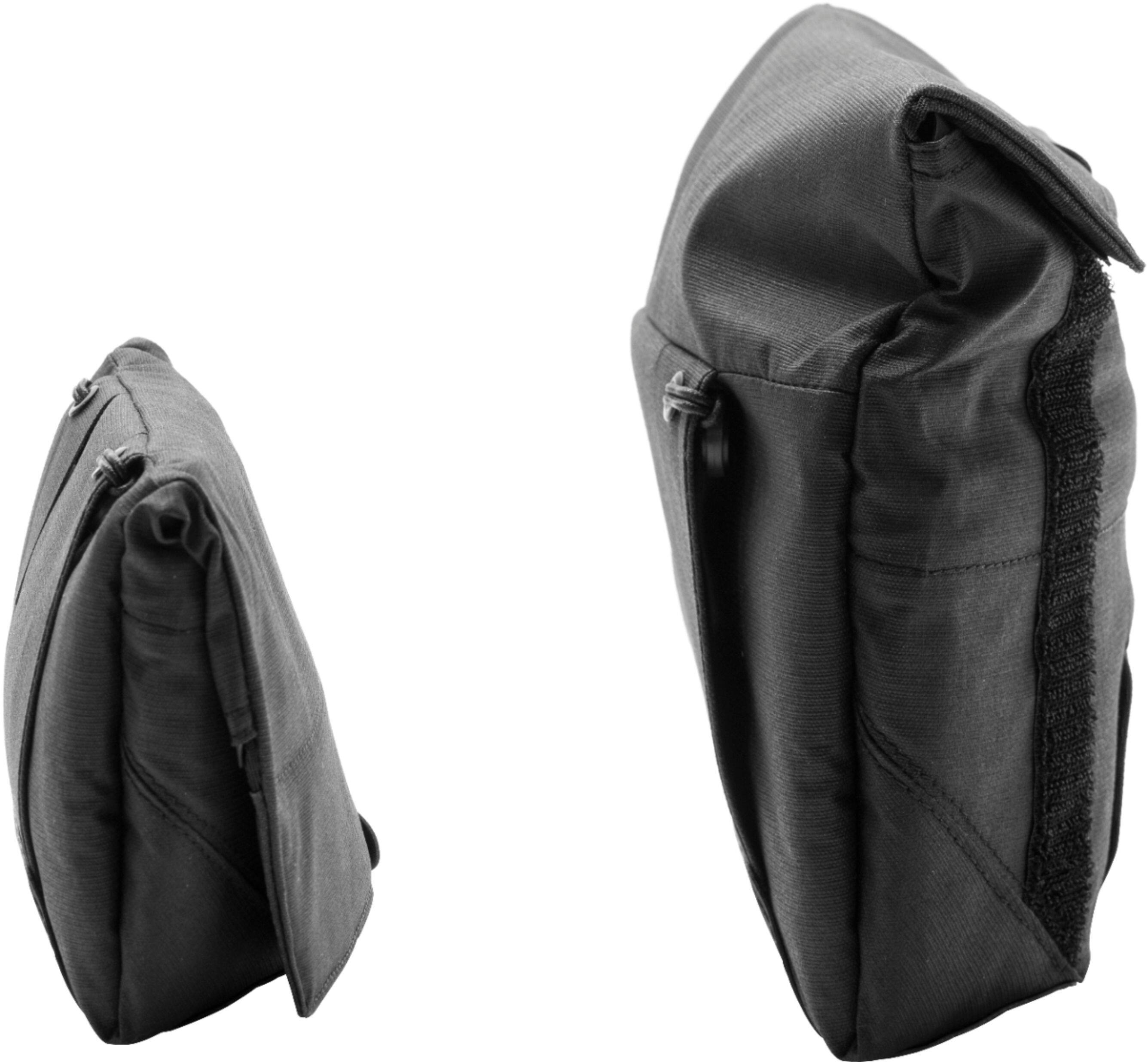 A:Answer I tested with my Canon A-1 with 50mm f1.4. It does fit, snag and may different ways, lens up, lens towards front, down, side ways. But it is not an ideal shape for 35mm camera with a short lens as this bag is wide and relative flat, thus the lens protrude and deshape the bag.