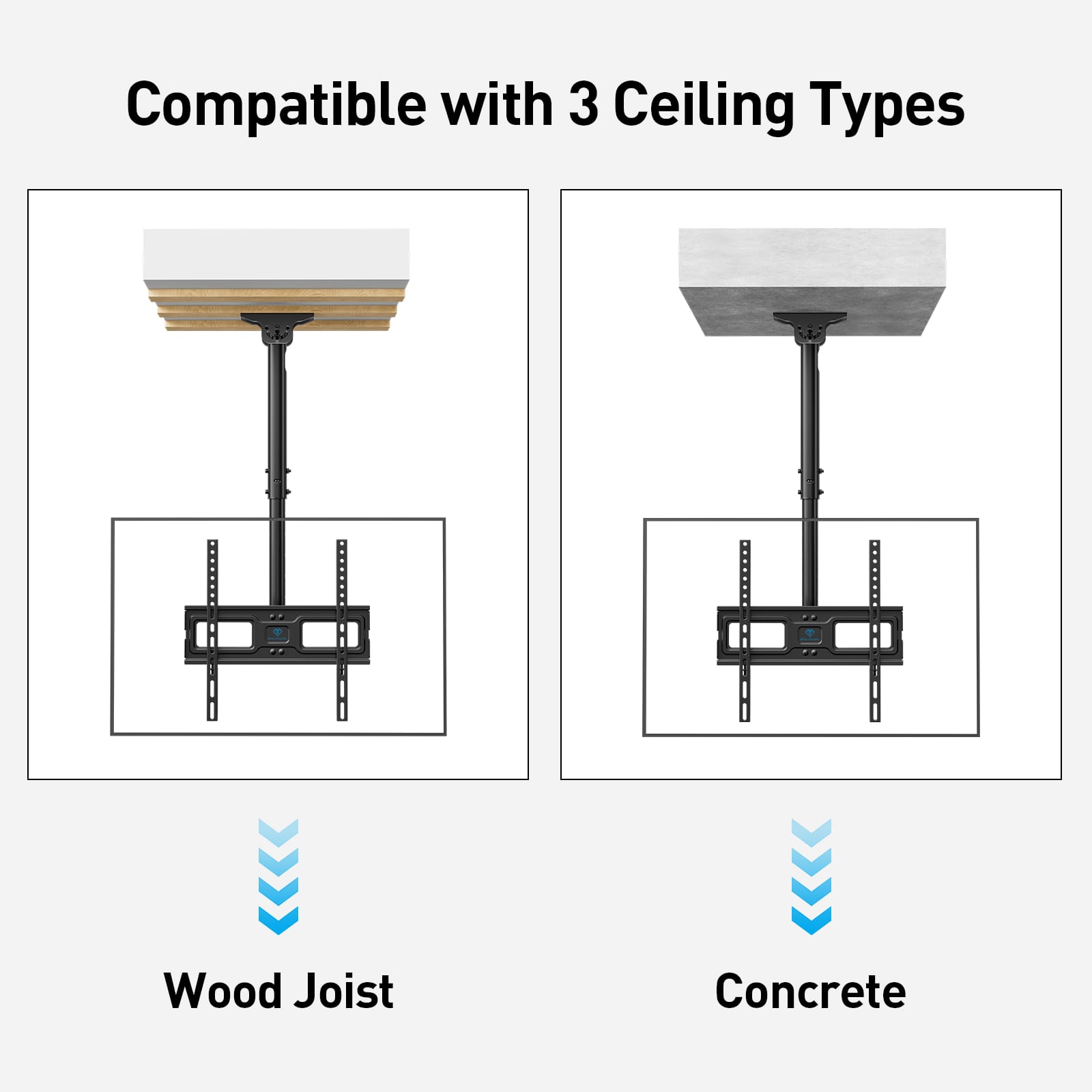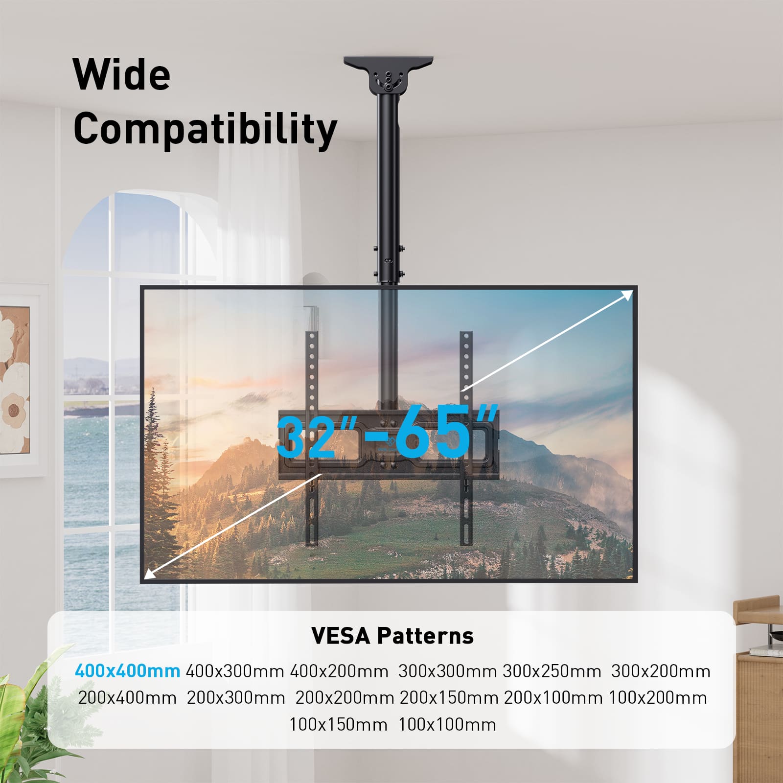 Perlesmith - 32"–65" Ceiling TV Mount Up to 110lbs, VESA 100x100 to 400x400mm, PSCM3B-US - Black
