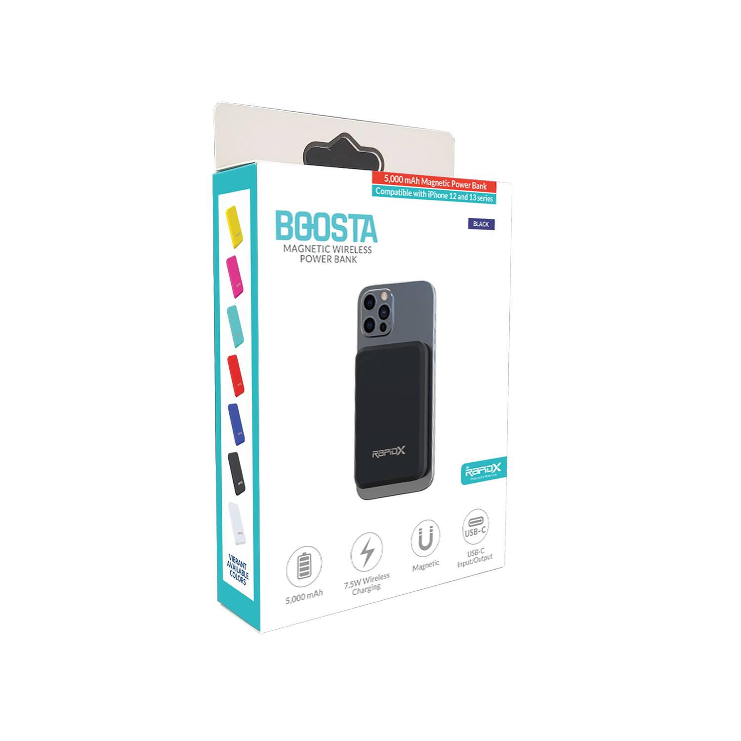 This question was asked about the related product: RapidX - Boosta 5k mAh 7.5W Magnetic Wireless Portable Charger for iPhone 12, 13 & 14 - Teal