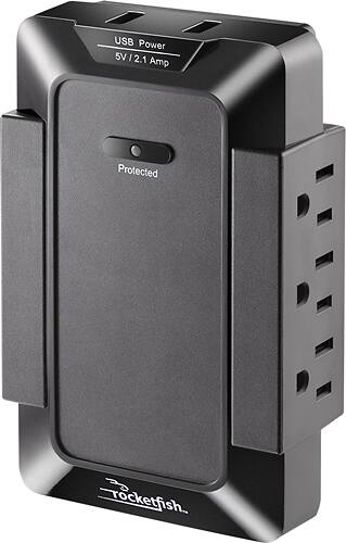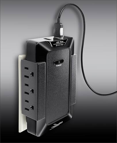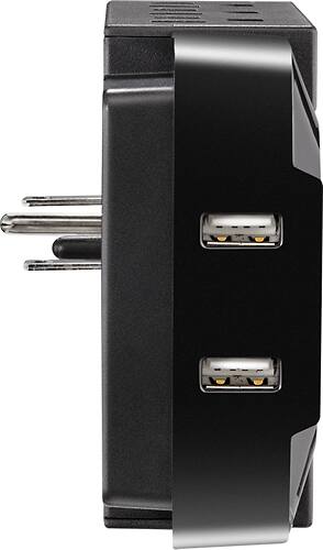 A:AnswerThe suppressor has a 3-prong plug that goes into the lower outlet of a standard double outlet. There's also a small plastic peg that fits into the grounding hole of the top outlet to help keep the suppressor in place when cords are being plugged/unplugged. The prongs and the plastic peg are fixed and do not fold into the unit for travel.