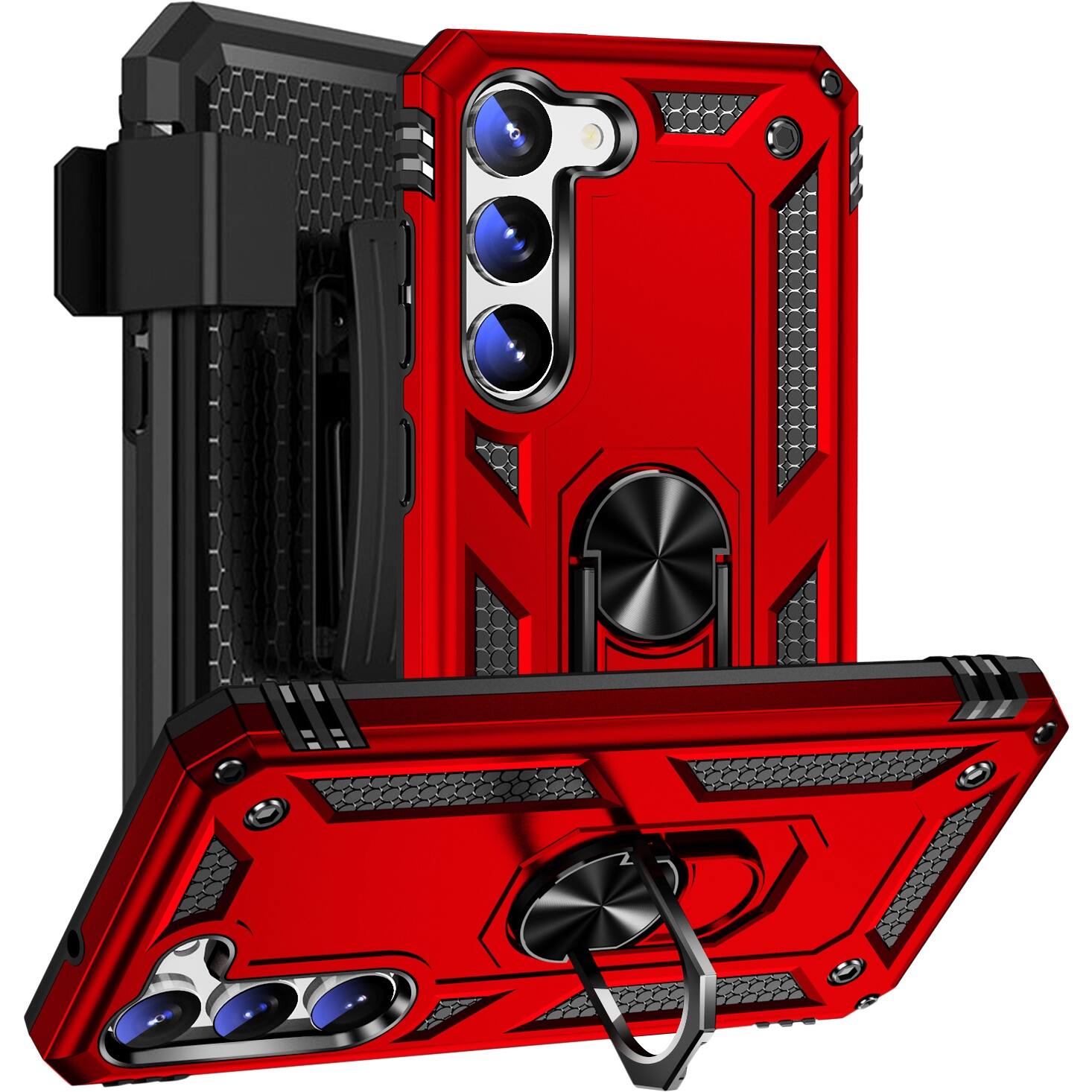 - A:Answer The SaharaCase Military Kickstand Series case protects the Samsung Galaxy S23 with its triple-hardened TPU and rubber material that minimizes stretching and yellowing, enhancing durability.