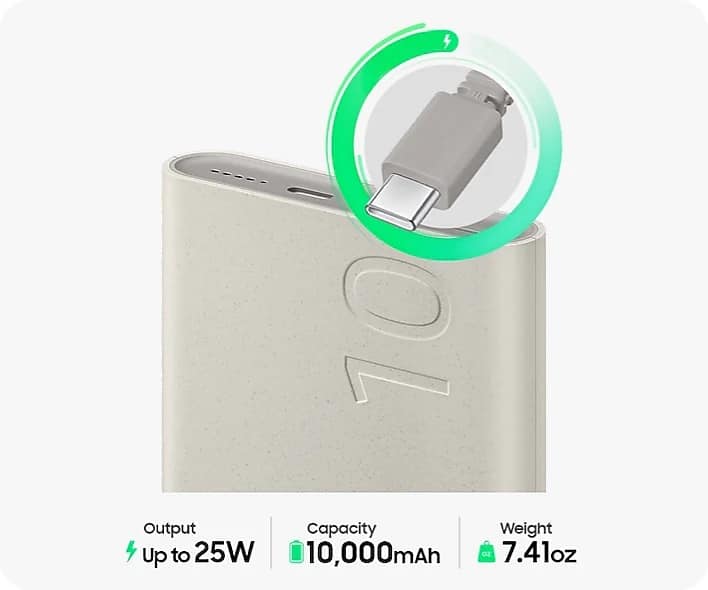 - A:Answer Salutations Jay, thank you for taking the opportunity to ask us your question about the Samsung 25W 10,000mAh Wireless Battery Pack Wireless Charger. The advertised 25W 10,000mAh Battery Pack Wireless Charger delivers reliable, on‑the‑go power with Super Fast Charging support and a built‑in wireless charging pad, making it ideal for Galaxy phones, Buds, and other compatible devices. Its high‑capacity 10,000mAh battery provides multiple charges, while the dual‑port design, including USB‑C and USB‑A, lets you power two devices at once with up to 3A output for efficient, stable charging. If you have any other questions for us, please feel free to reach out to Support. Thanks for choosing Samsung! - Debra