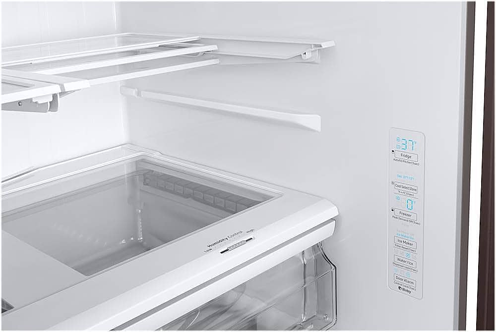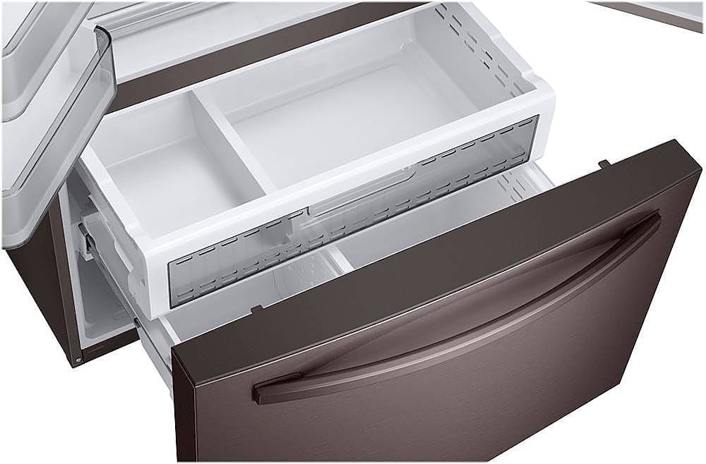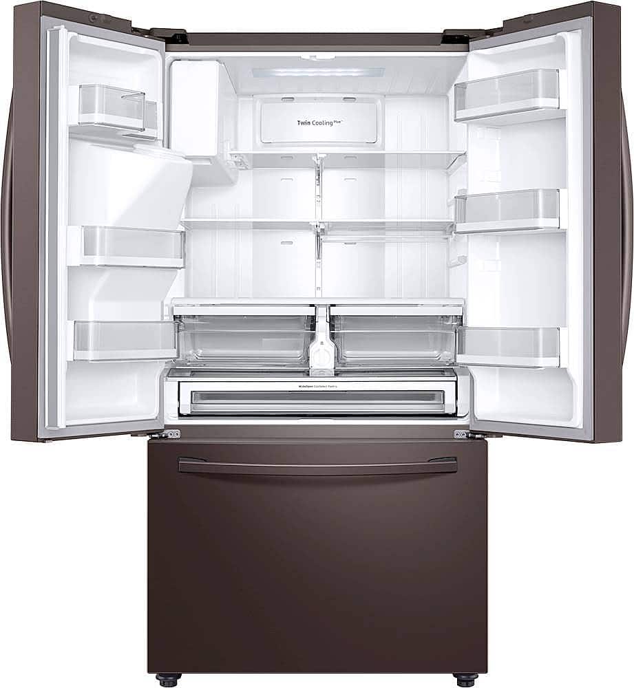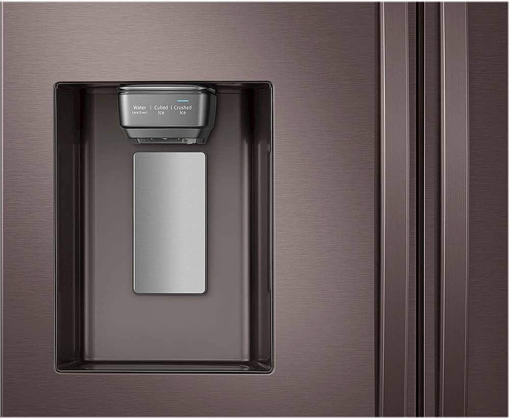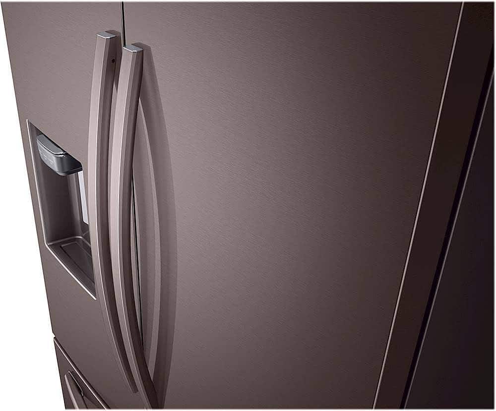 - A:Answer Hi there, No, the refrigerator's handle is outside, and the measurement of the fridge without the handle is 34 inches in depth, while with the door and handle, the depth is 36 1/2 inches. You can check the link below and see the dimensions of the unit for reference. Measurement guide: https://image-us.samsung.com/SamsungUS/willitfit-pdfs/031919/WillitFit_RF28R7351.pdf Have a great day, -Ernest-