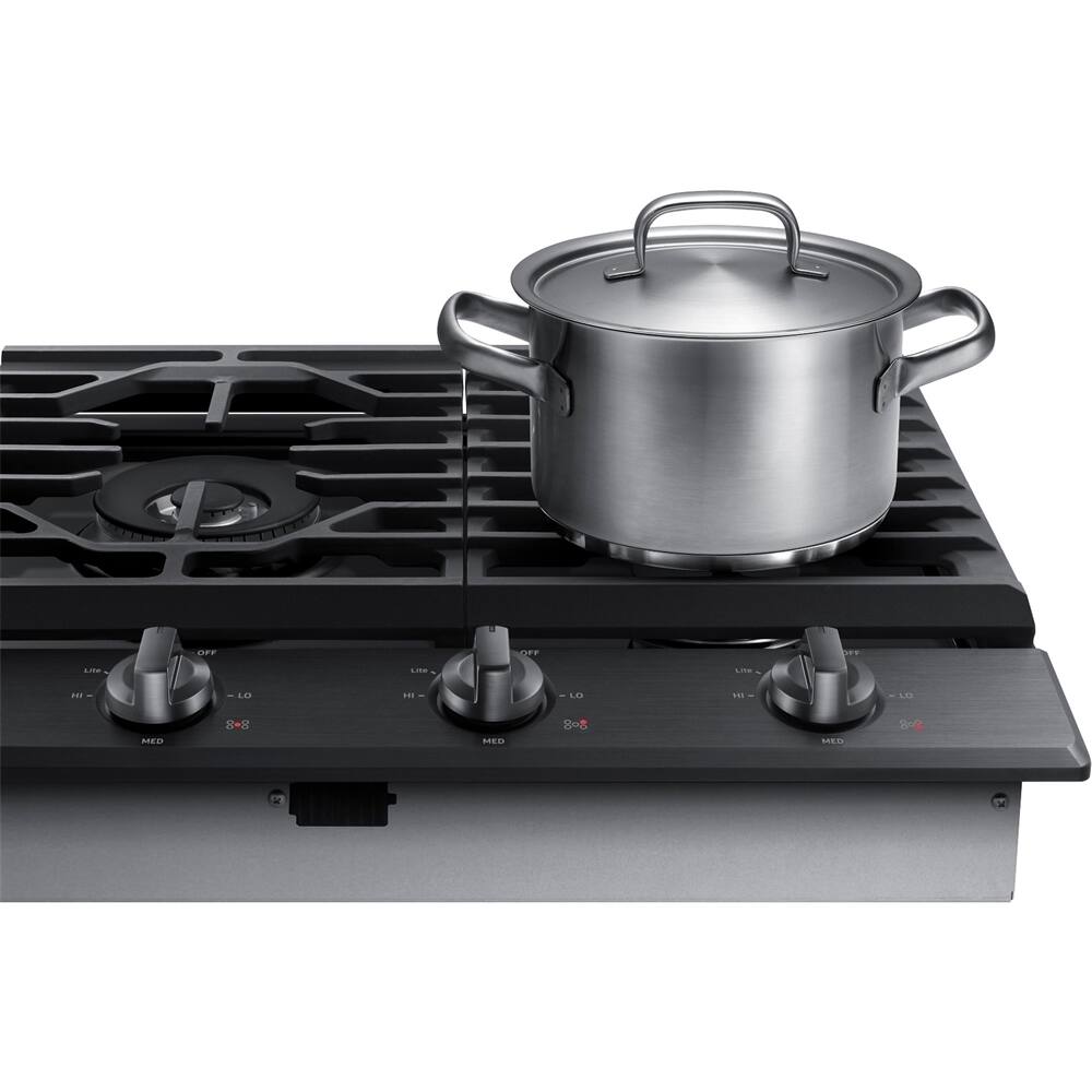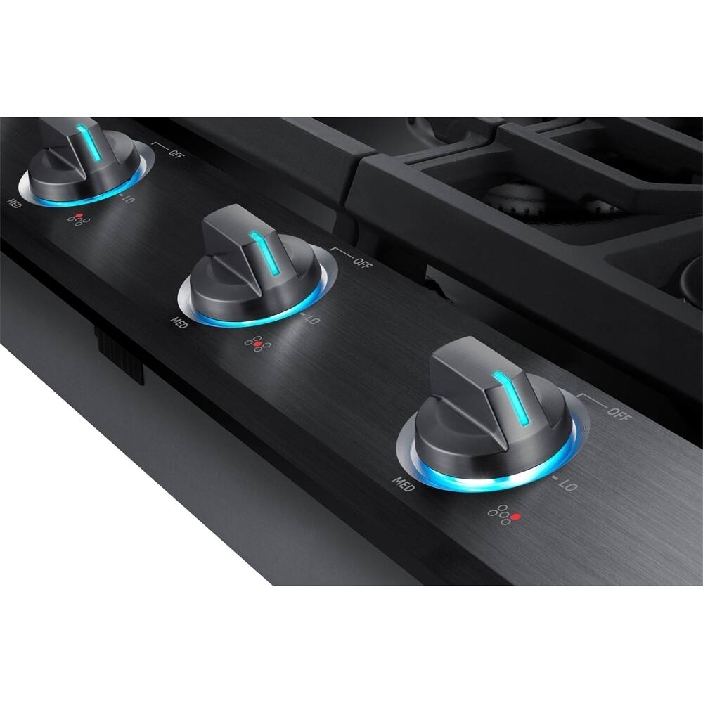 A:AnswerIt just got installed so just used a few times. Finish seems great! Burners are heavy grates. Knobs light up blue when on. Have not figured out the "smart'" app yep but workimg on it.