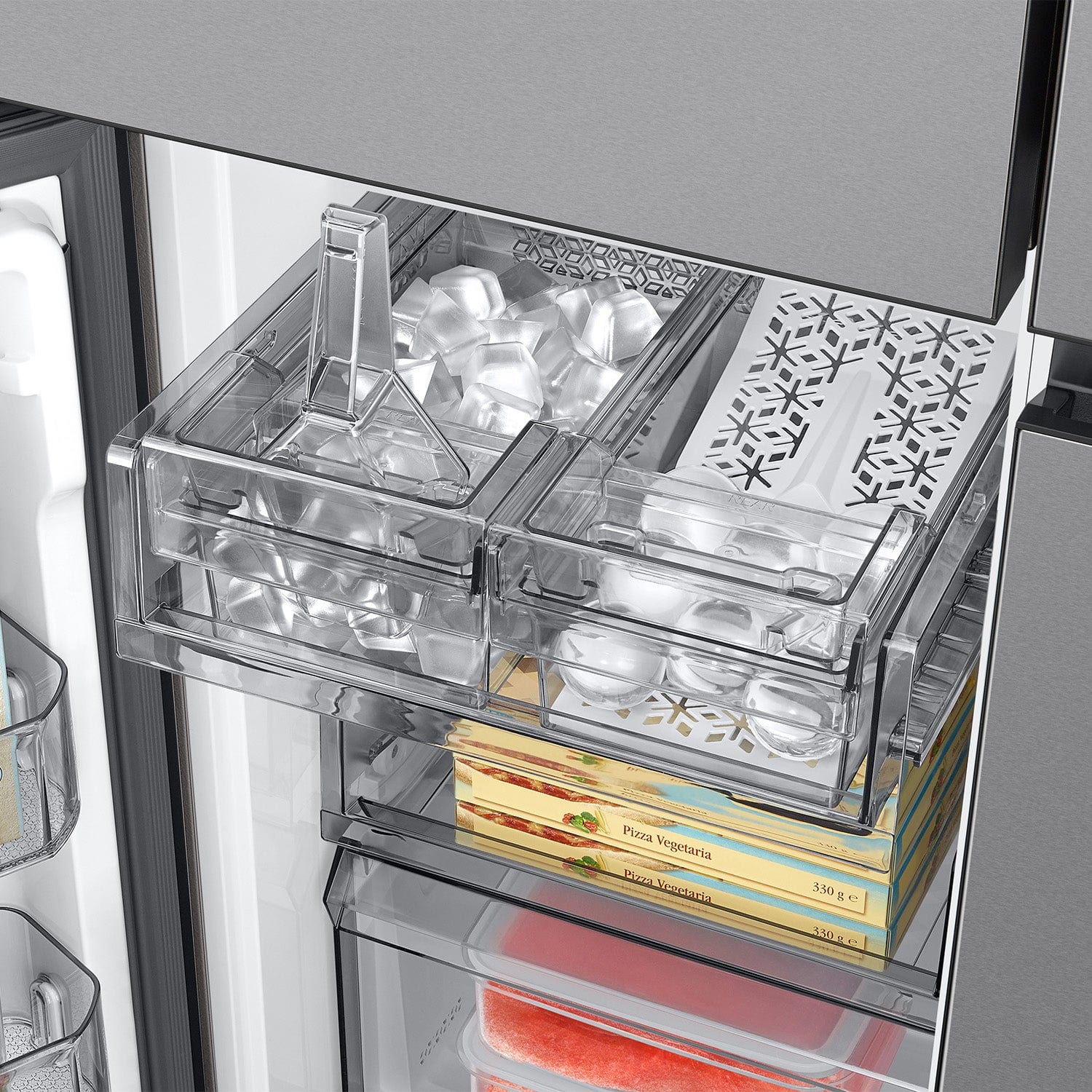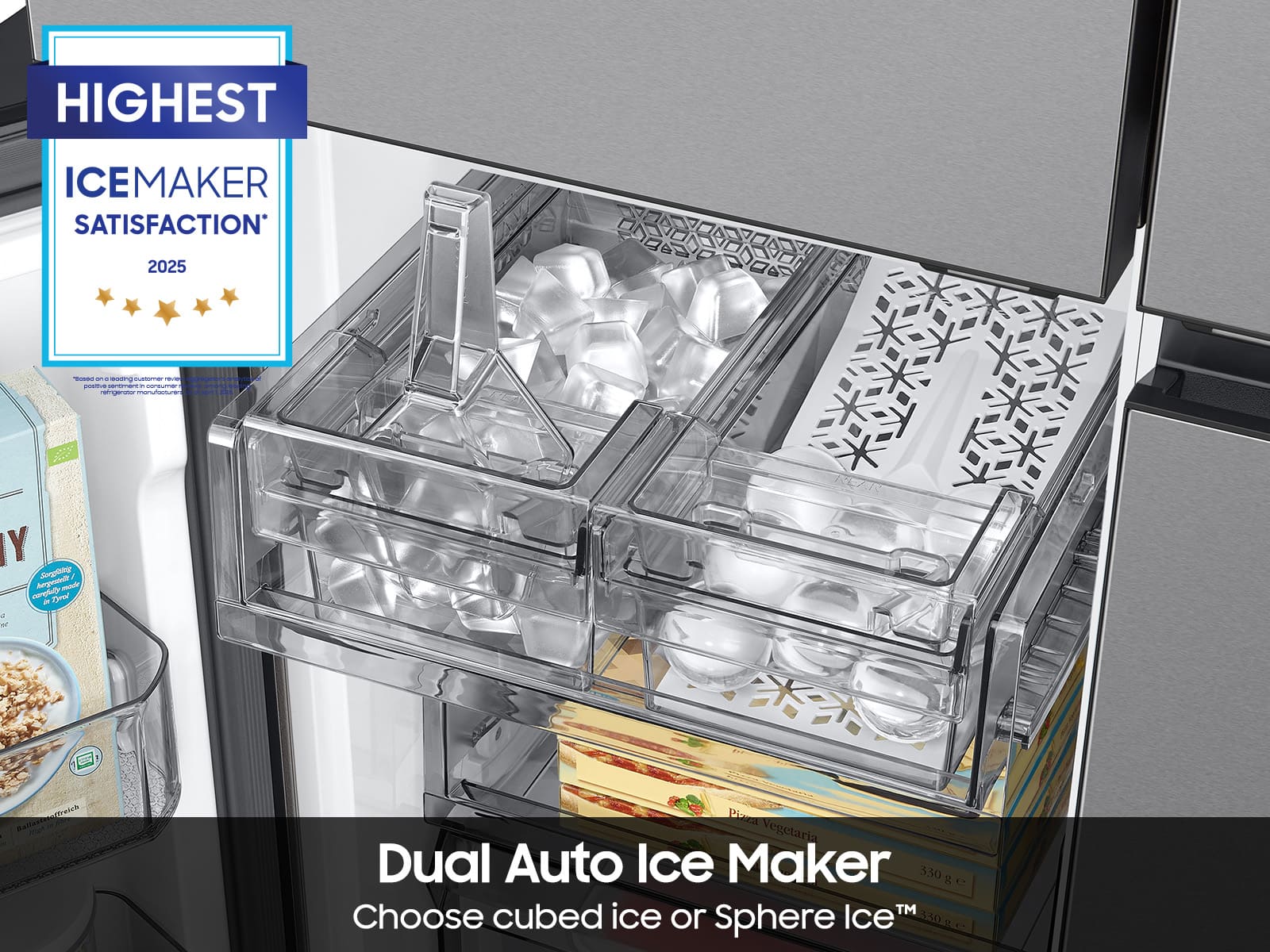 - A:Answer Yes, it comes with a Dual Auto Ice Maker that makes both cubed ice and Whisky Ball Ice.