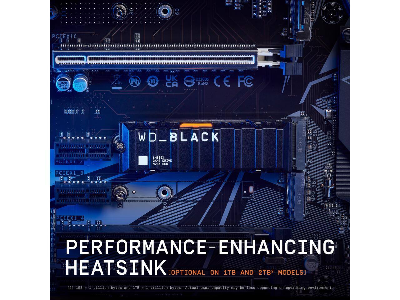 ![09 - 1 A . + 3 A . E l PCIEX16 E X : : I Die PAECI SKA4S Pb 10 UK CA D33006 RoHS CE FC RARAADA K*SKNNN PCIEAI 3 WD_BLACK SNB50X GAME DRIVE NVMe SSD 19SJB SB DE M2P $ PCIEX1_3 3 80 9SJB VEE SB ER M20 PCIEX1 4 os PERFORMANCE-ENHANCING HEATSINK [OPTIONAL ON 1TB AND 2TB MODELS] [2] 1GB = 1 billion bytes and 1TB = 1 trillion bytes. Actual user capacity may be less depending on operating environment.](https://pisces.bbystatic.com/image2/BestBuy_US/images/products/ba98a104-7897-4f78-8774-ca0be4c7e0c2.jpg;maxHeight=54;maxWidth=54;format=webp)