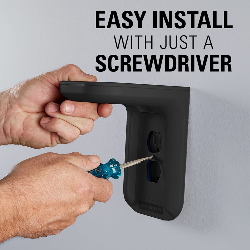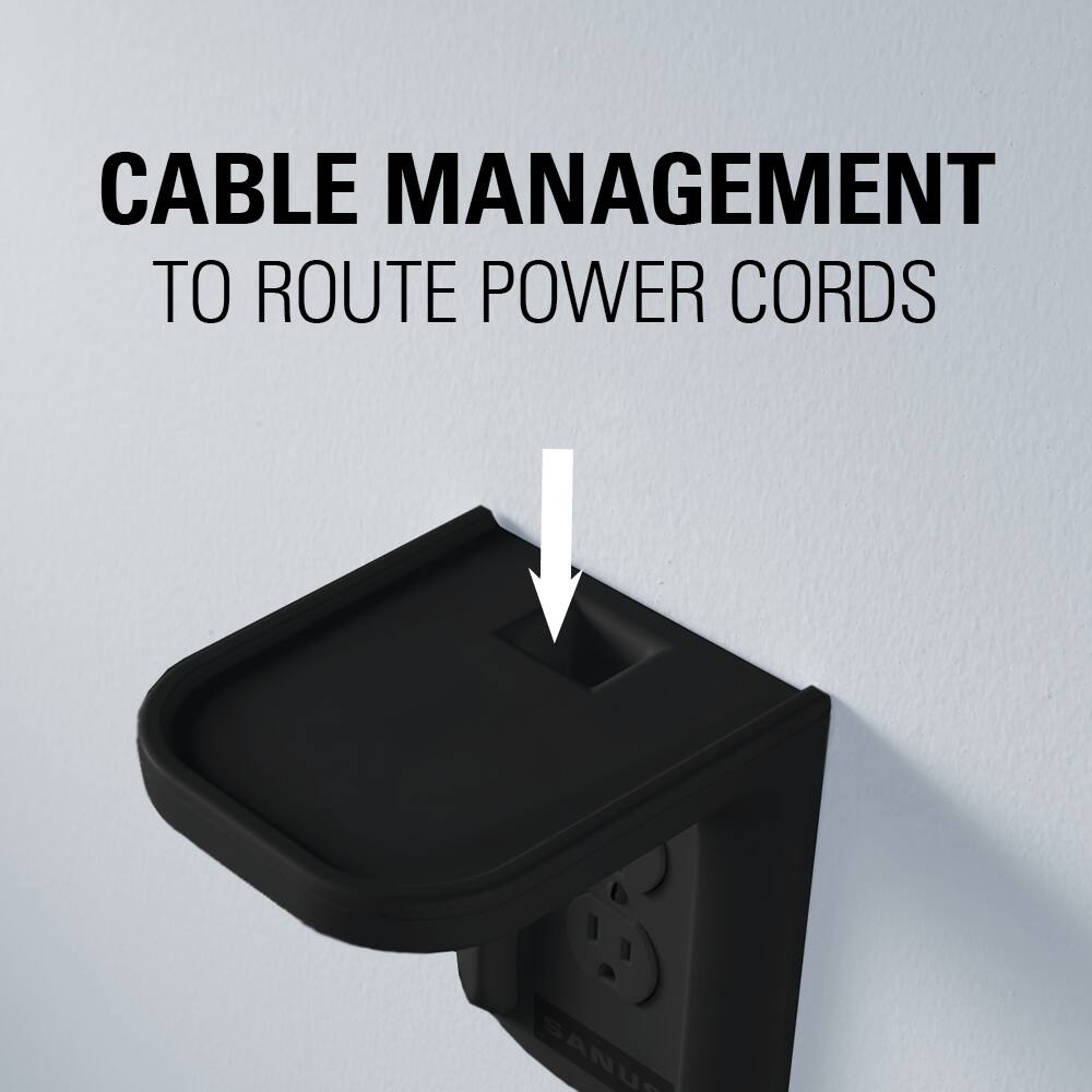 - A:Answer Yes, the Sanus outlet shelf has integrated cable management to conceal cords.