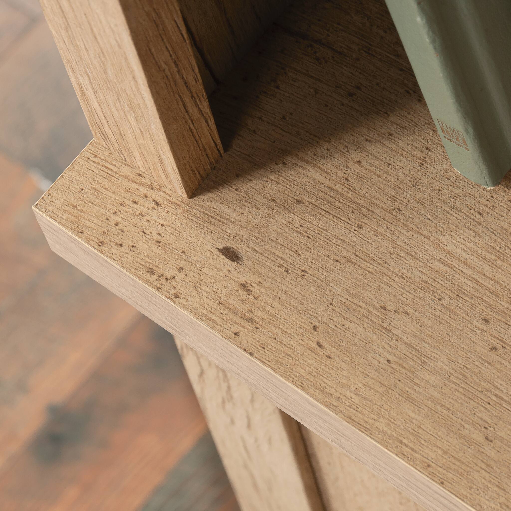 - A:Answer The bookcase has cord access through the back panel to keep all your electrical cords and wires organized neatly and out of sight.