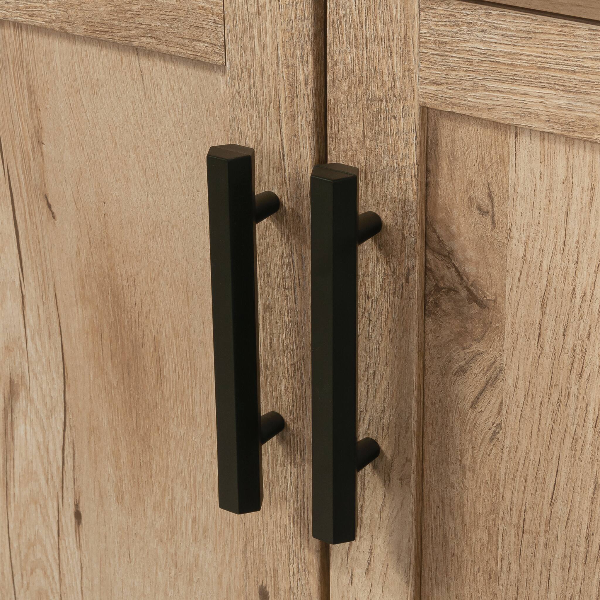 - A:Answer The upper shelves of the bookcase can be adjusted, and there is an adjustable shelf behind the double doors as well.