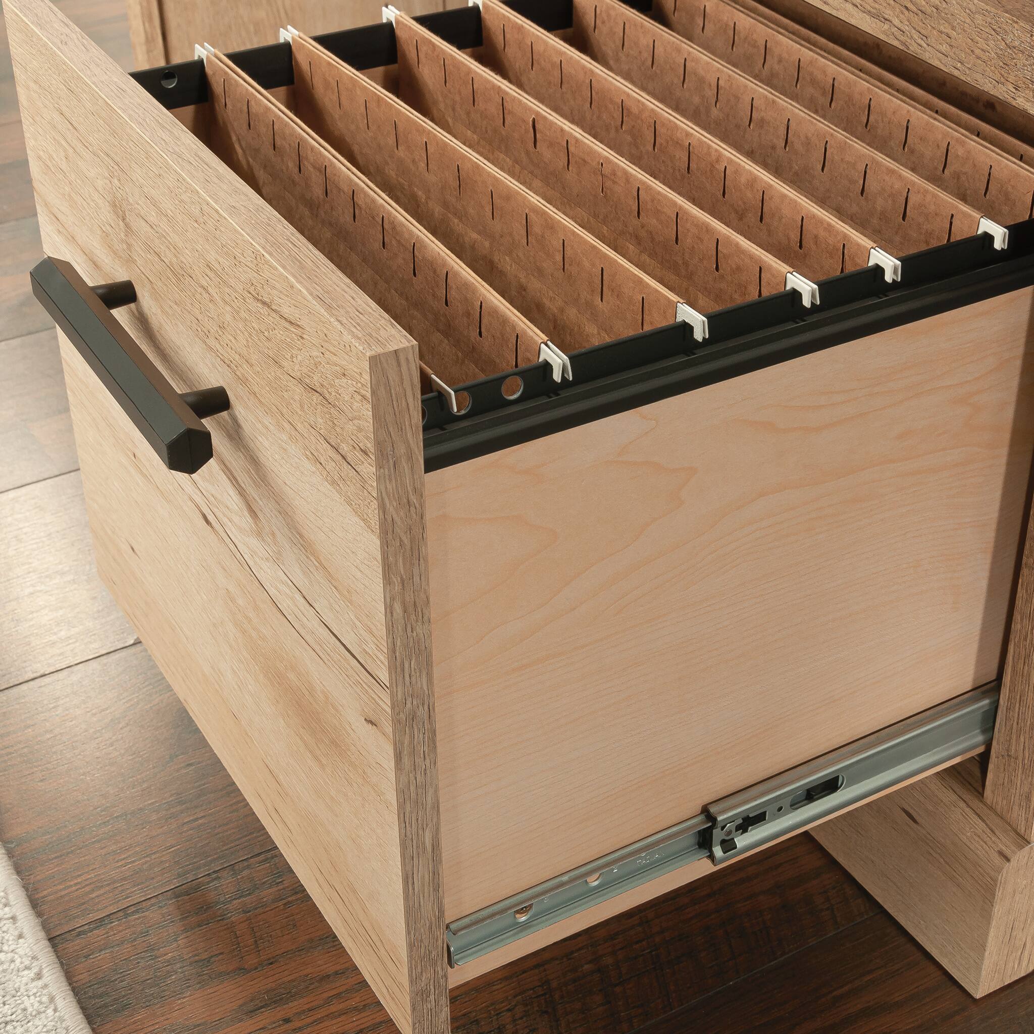 - A:Answer The open storage features an adjustable shelf with plenty of room for additional files.