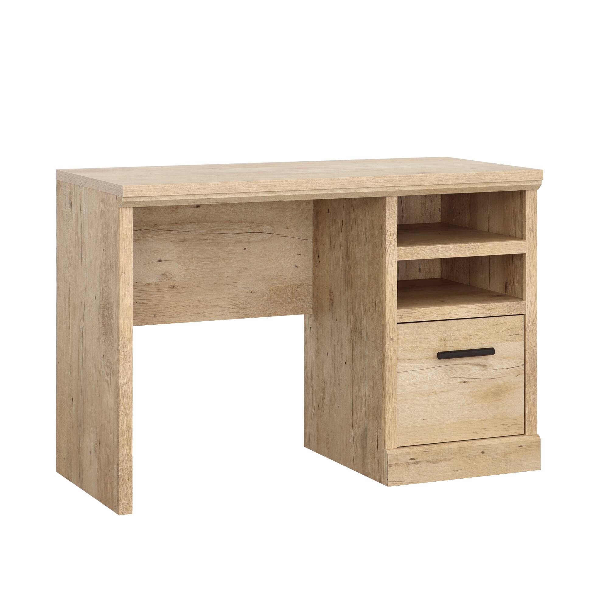 - A:Answer The Aspen Post Single Pedestal Desk has a weight limit of 50 lbs. on the top, the adjustable shelf has a weight limit of 25 lbs., the fixed shelf has a weight limit of 35 lbs., and the drawer has a weight limit of 35 lbs.