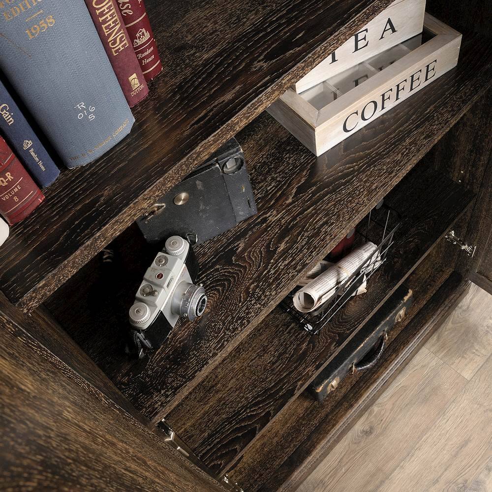 • Answer The Sauder - Barrister Lane Storage Cabinet contains one fixed center shelf and two adjustable shelves behind the doors.