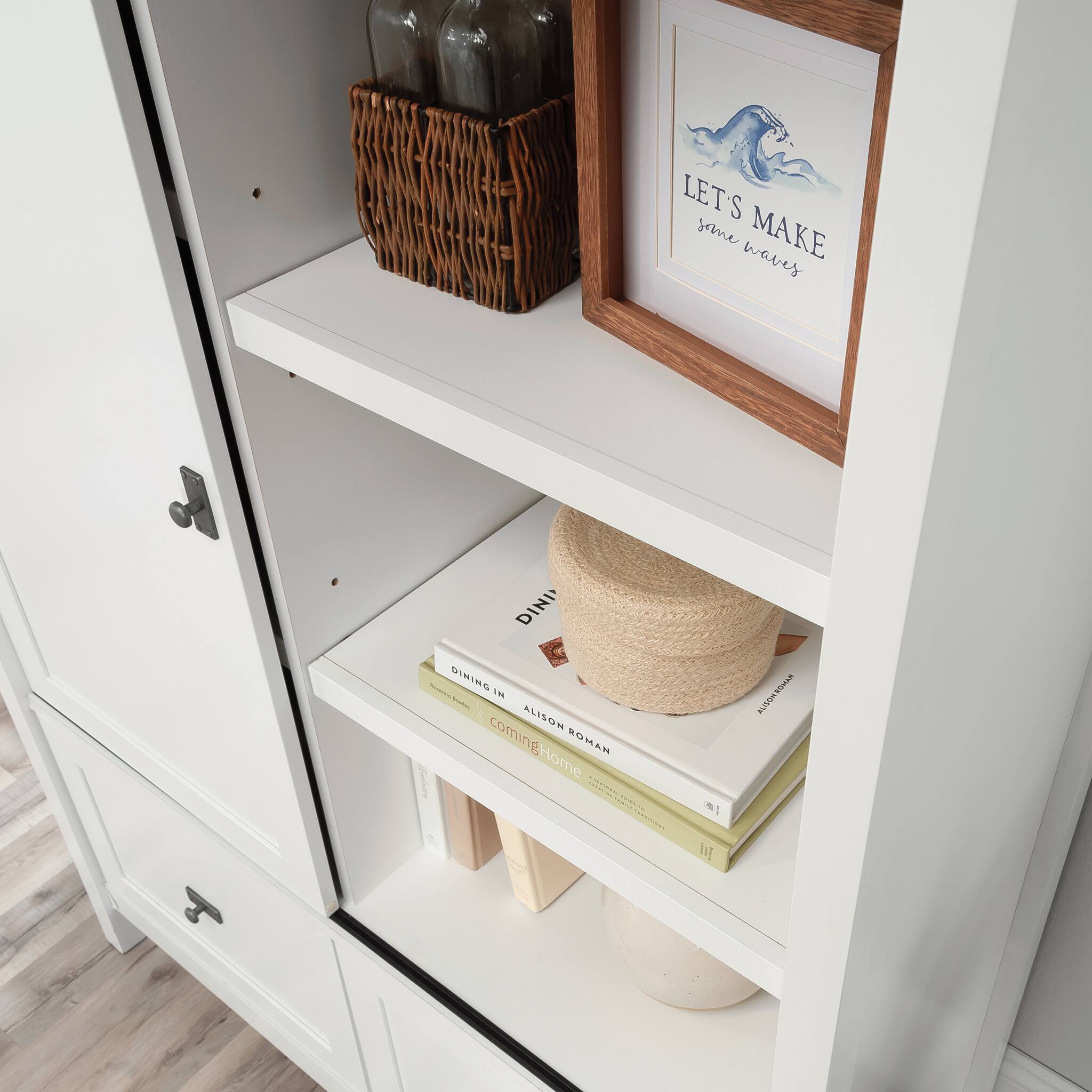 - A:Answer This storage cabinet has four adjustable shelves.