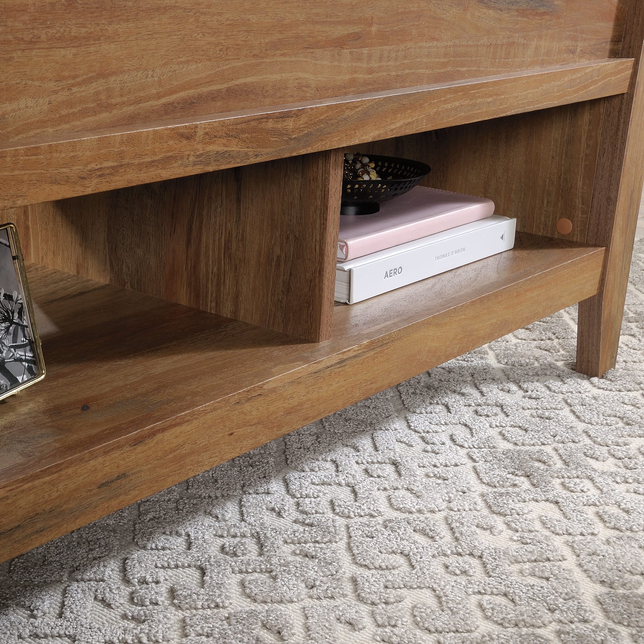 - A:Answer When the Sauder Dakota Pass Coffee Table is open, the table is 23 5/8" high. This measurement is from the floor to the top of the table.