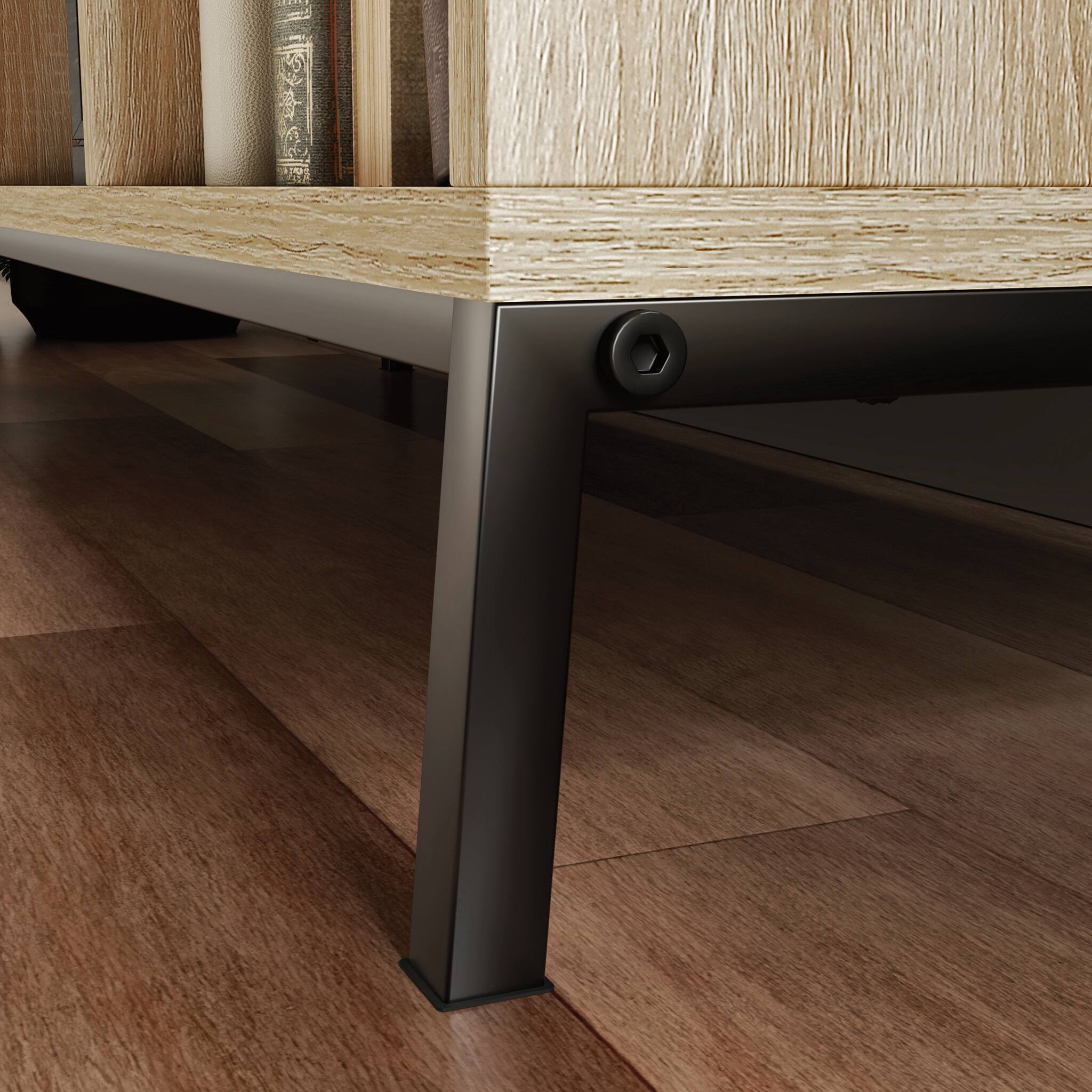 - A:Answer The bookshelf is made of engineered wood, a laminate finish, and metal hardware.