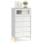 - A:Answer The Sauder River Ranch 4-Drawer Chest is 31 3/4 inches wide, 42 1/4 inches high, and 17 7/8 inches deep. The top drawer is 5.5 inches deep and the three bottom drawers are 7 inches deep.