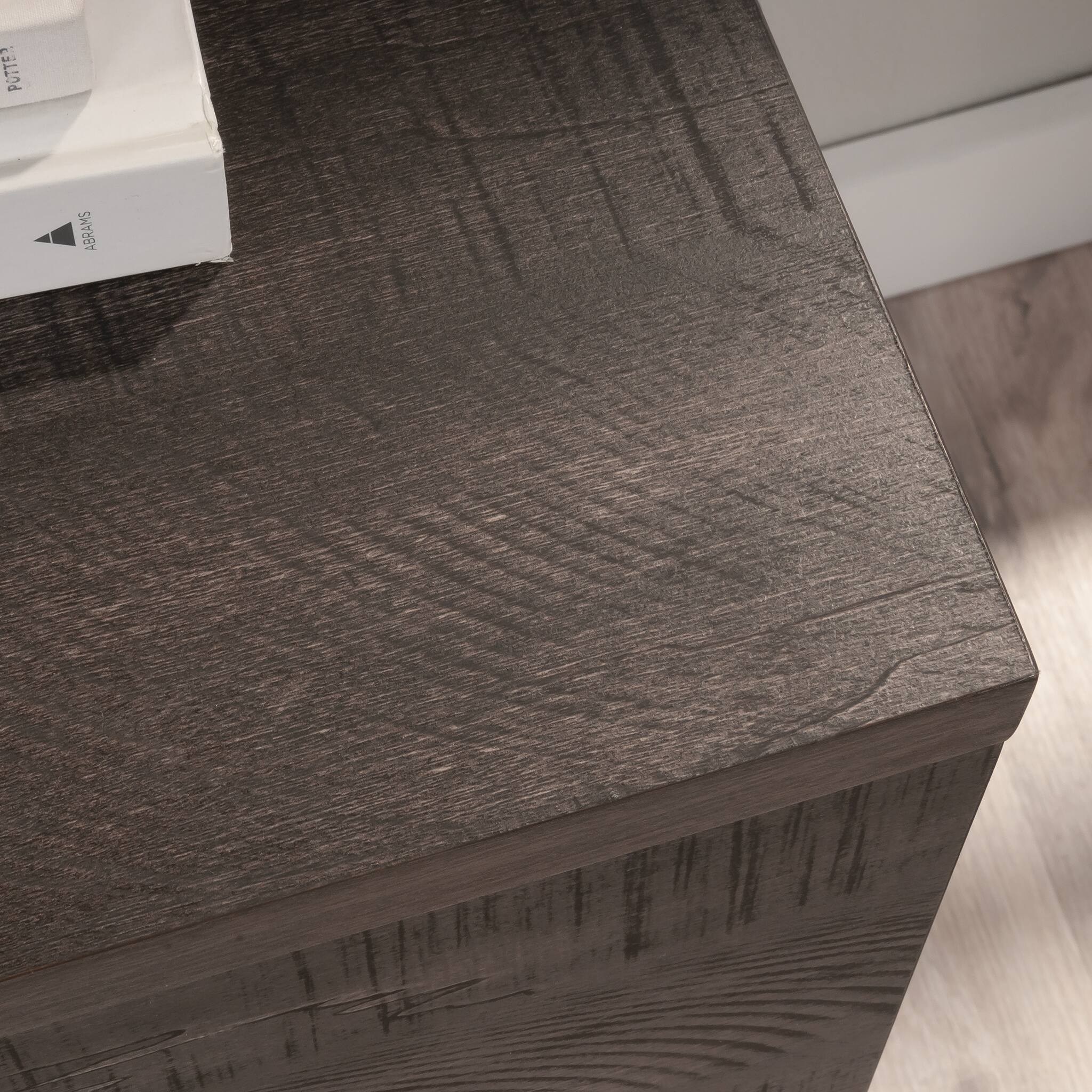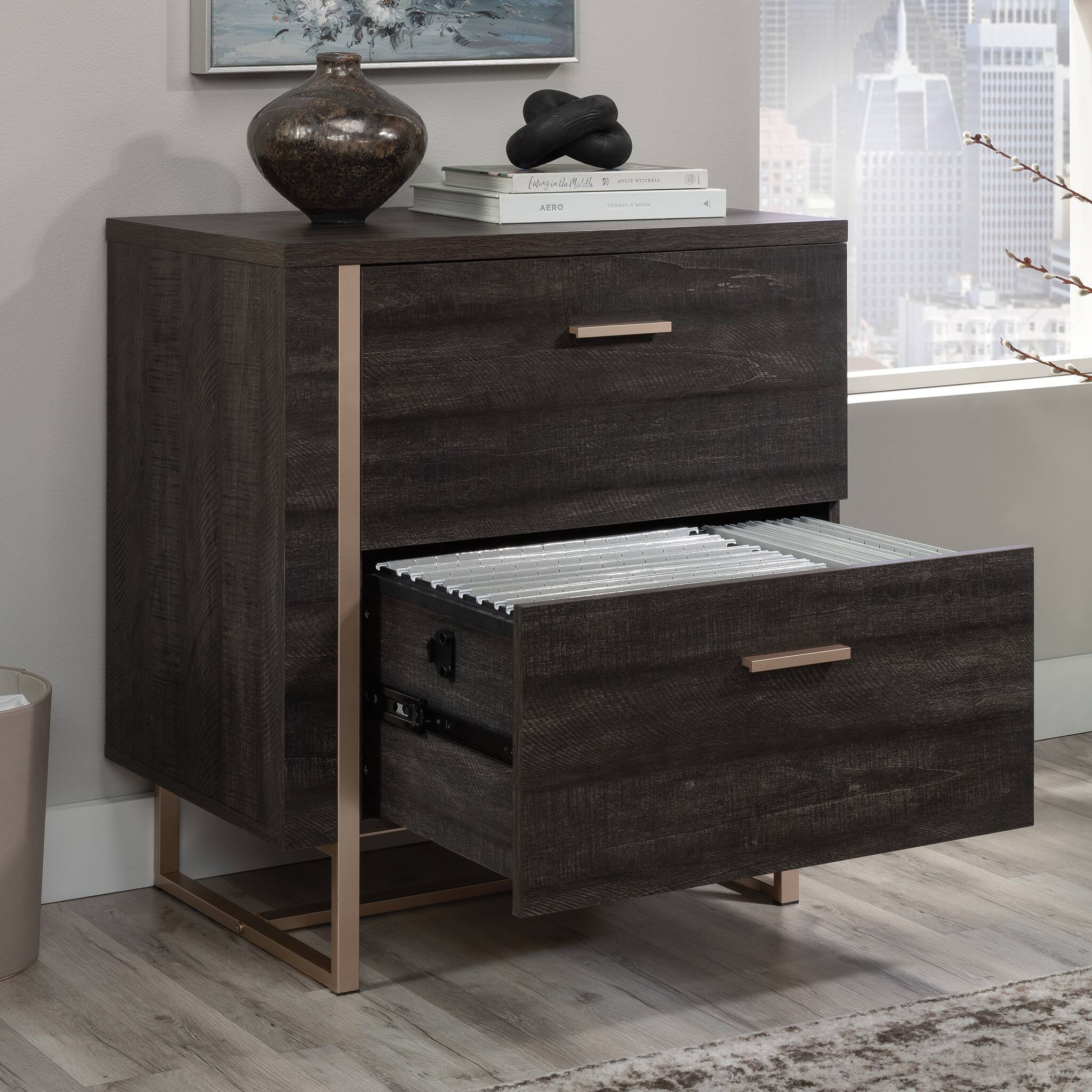 - A:Answer This lateral file cabinet has a shelf below the top surface that can be used to store books, binders, or other home office essentials.