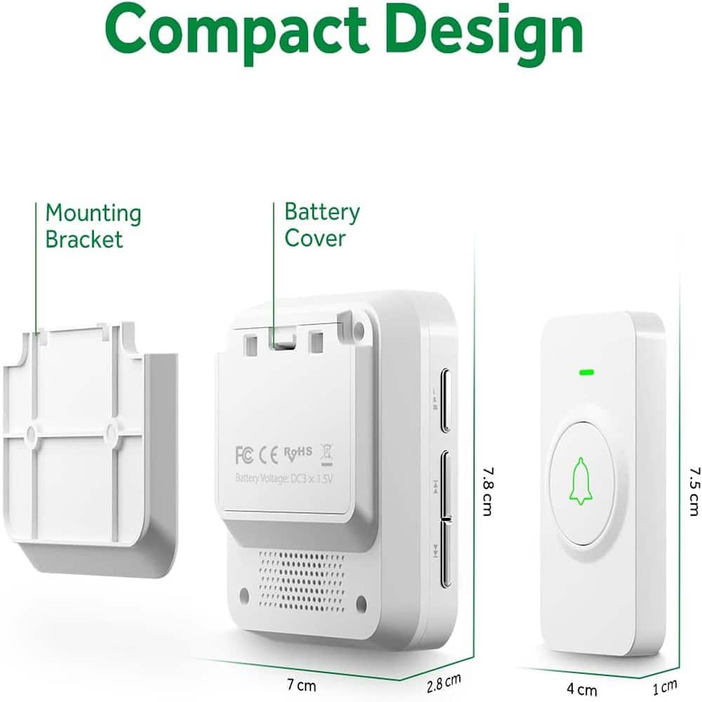 Schertz - Wireless door bell, WA-11 waterproof doorbell chime, portable door - White