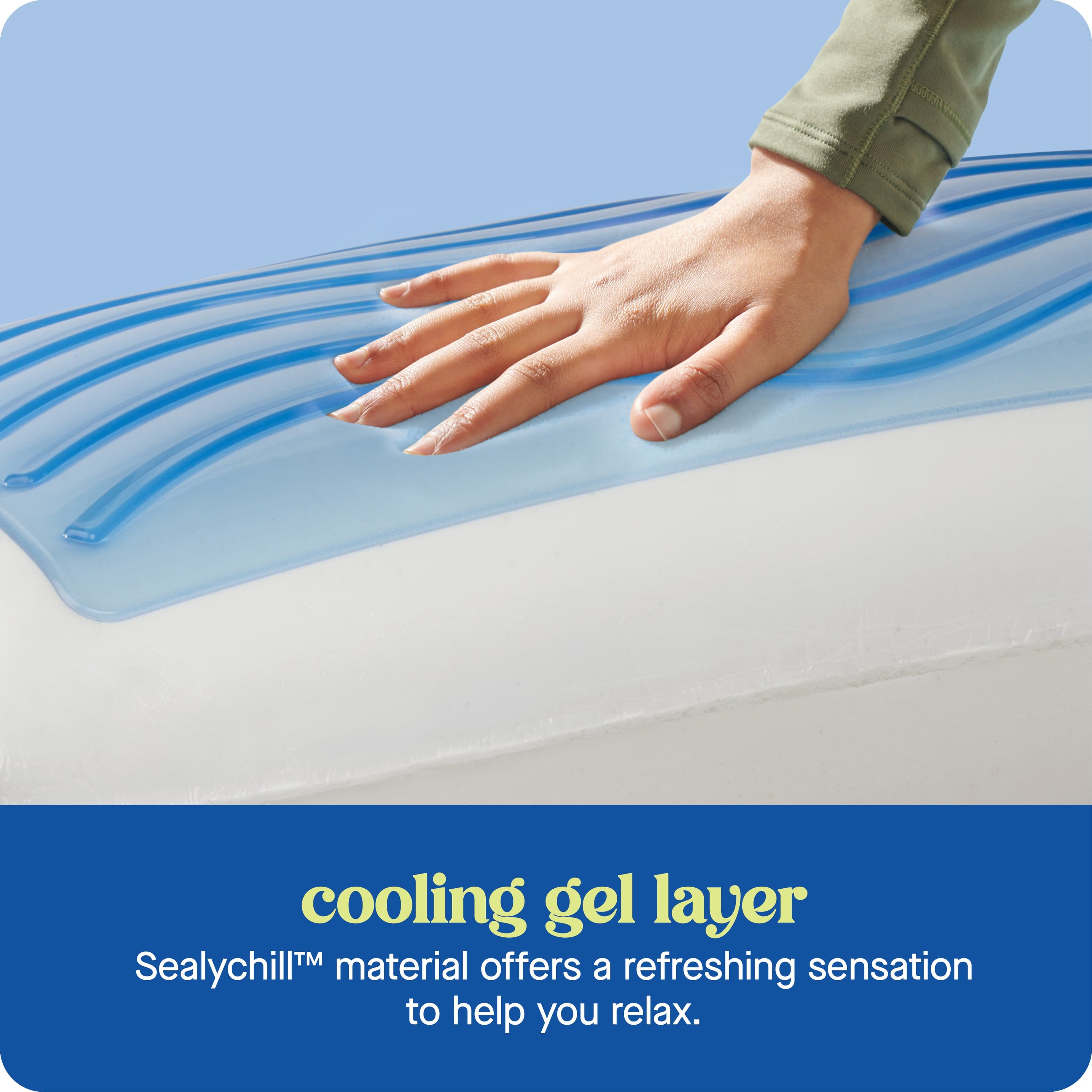 - A:Answer The SealyChill™ material is a cooling gel layer that provides a refreshing sensation to help you relax.