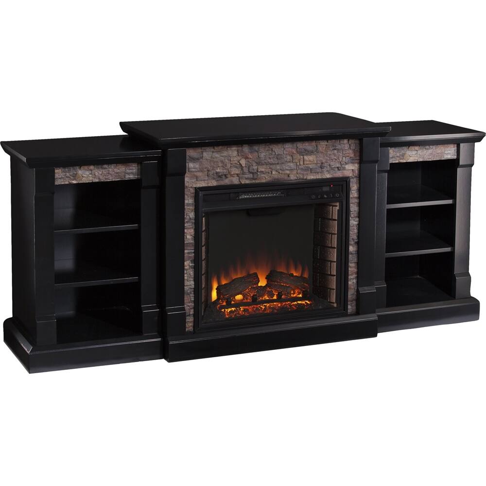 SEI - Gallatin Electric Fireplace - Satin Black With Black River Faux Stone