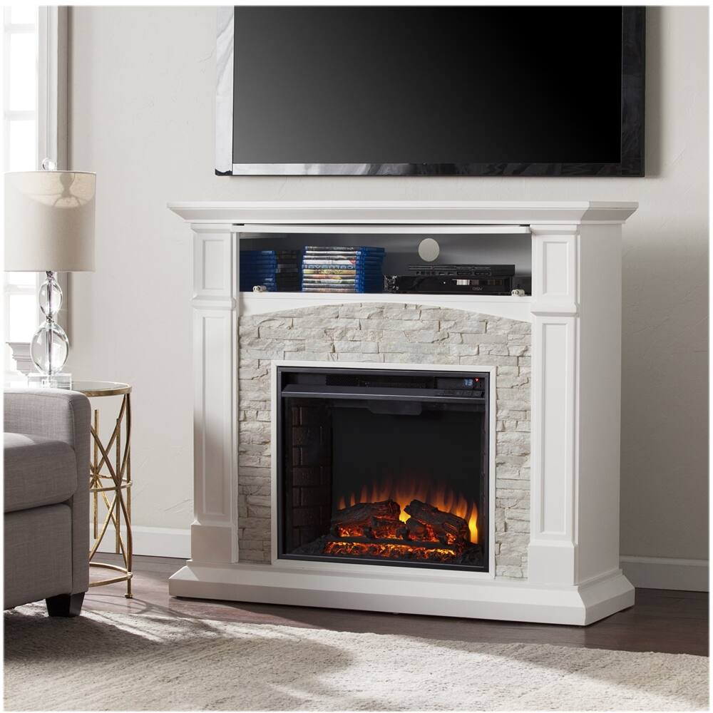 SEI - Seneca Electric Fireplace - Crisp White With Rustic White Faux Stone