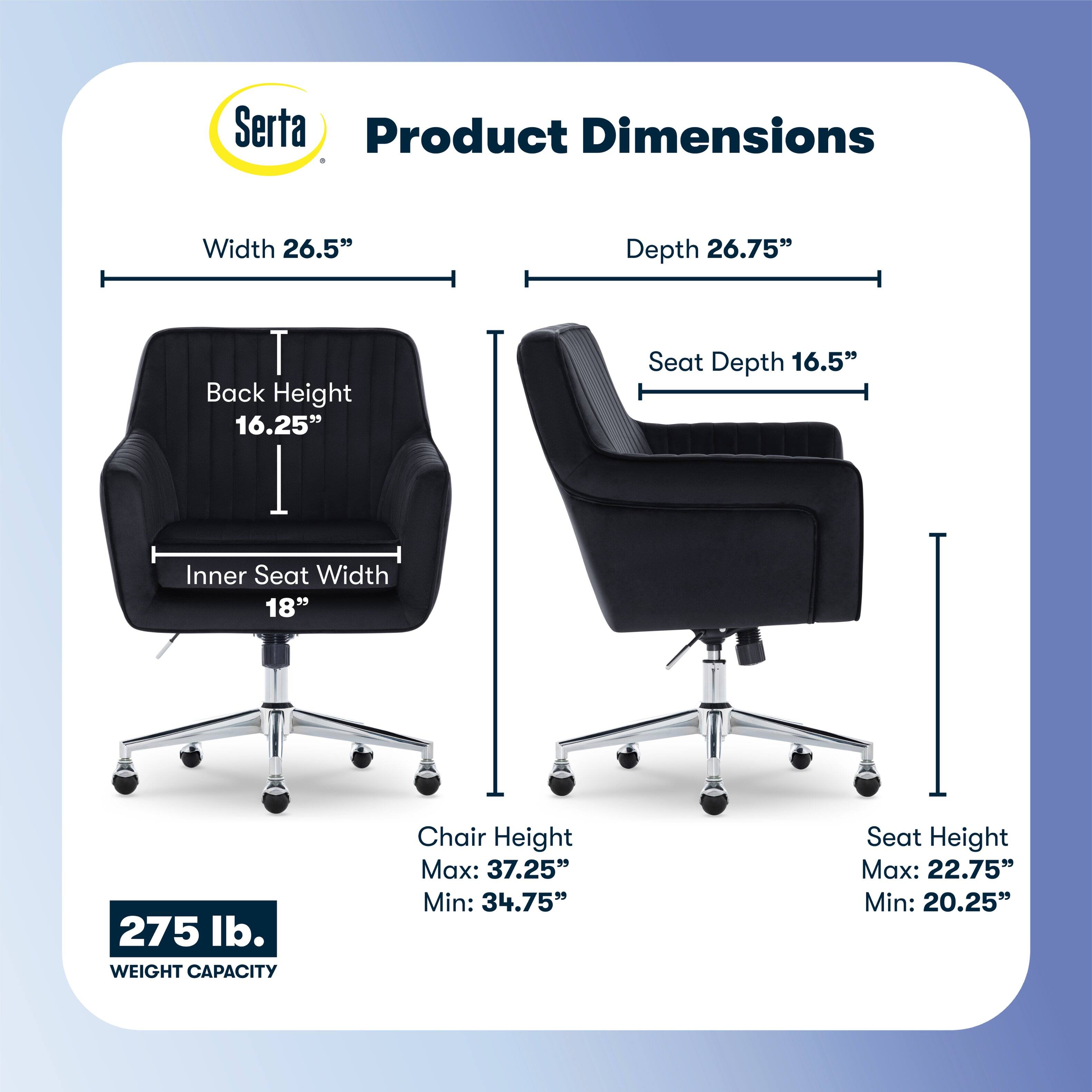 This question was asked about the related product: Serta - Deluxe Ashleigh Modern Home Office Chair - White Velvet - Gold Chrome
