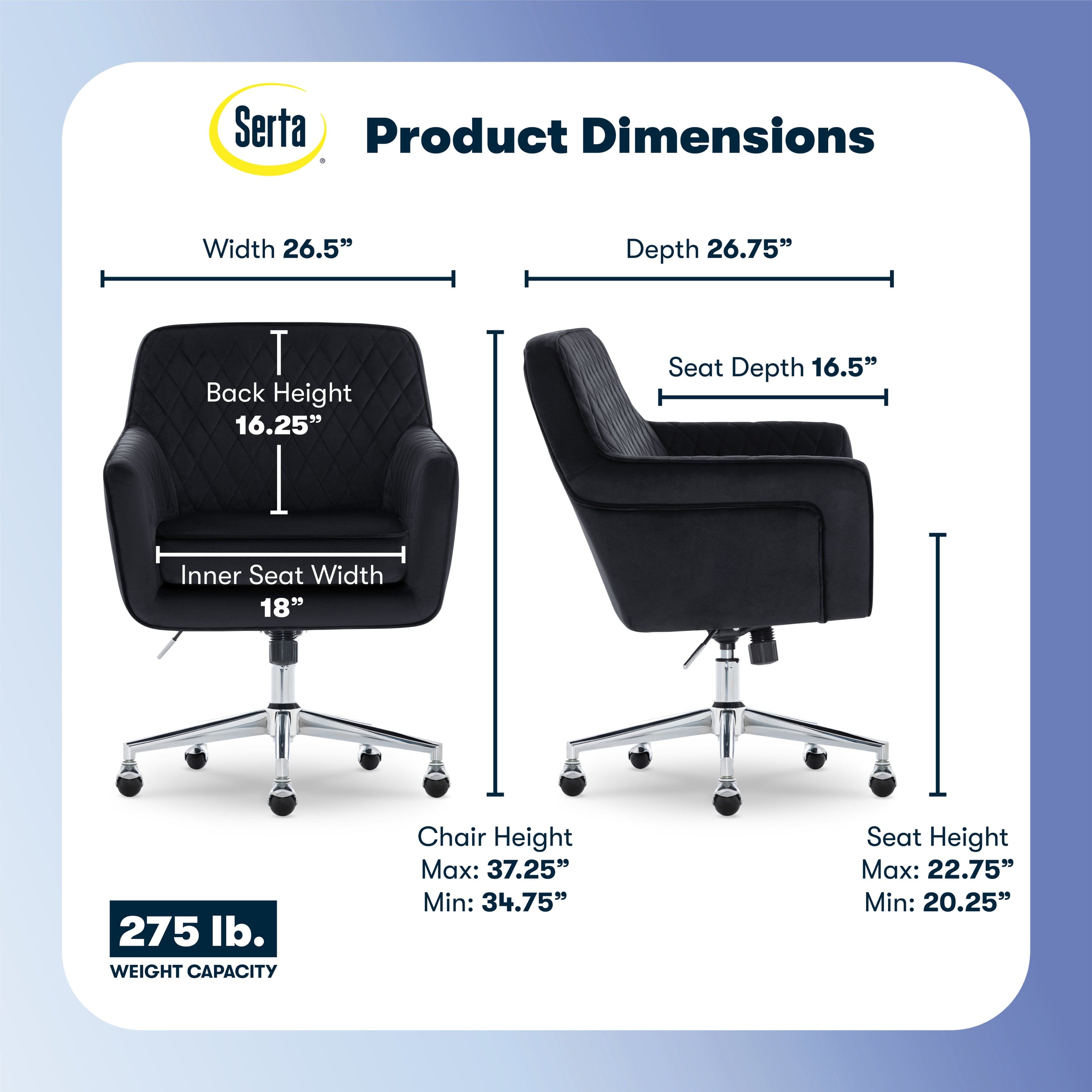 This question was asked about the related product: Serta - Deluxe Ashleigh Modern Home Office Chair - White Velvet - Gold Chrome