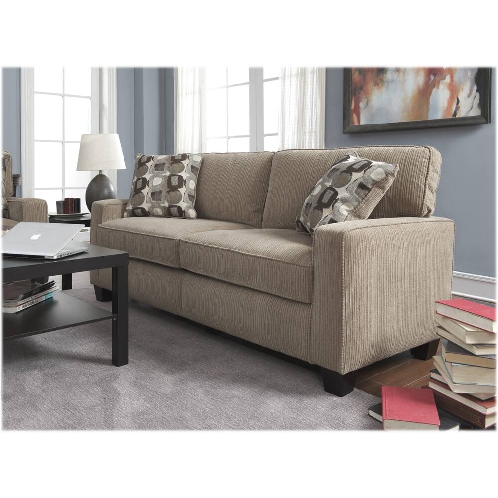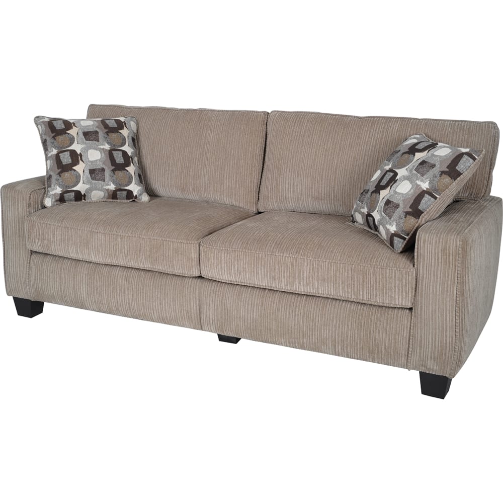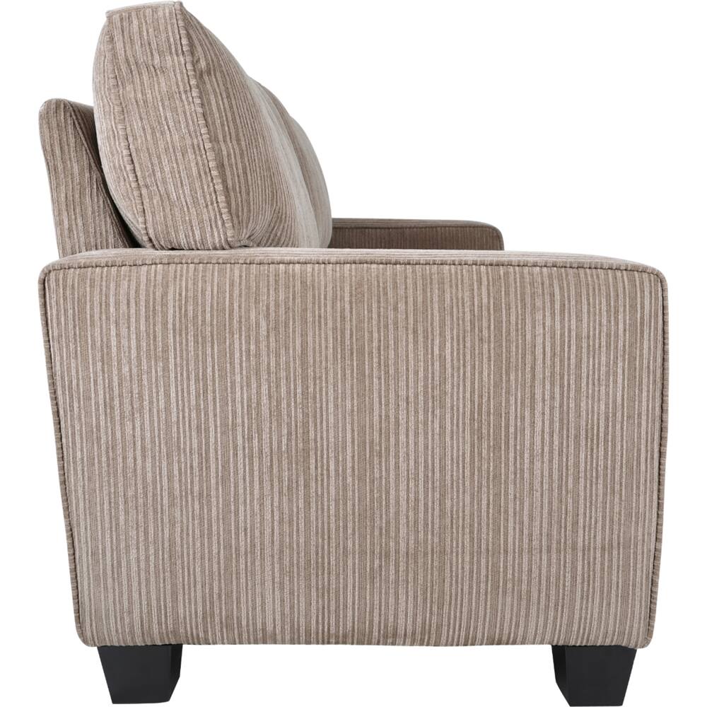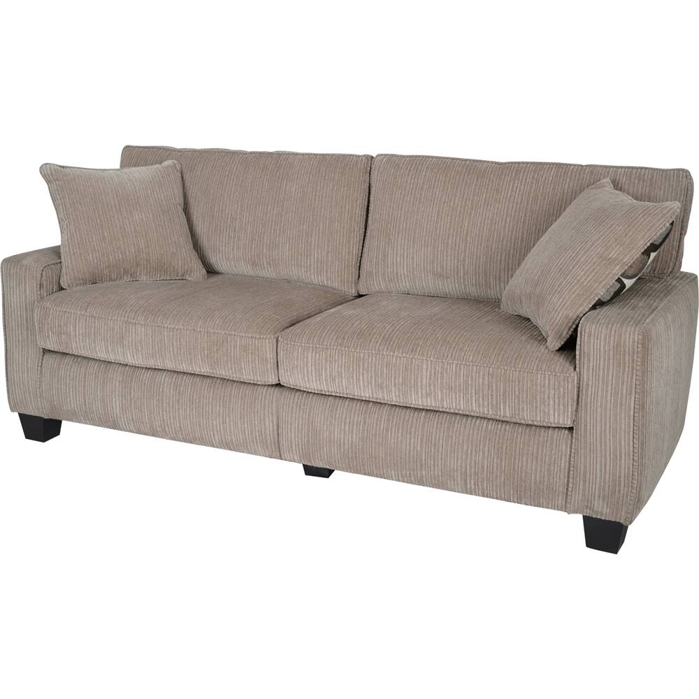A:AnswerHi! Thank you for your interest in this product. The upholstered material type is polyester fabric and the fabric finish is corduroy. Hope this helps!