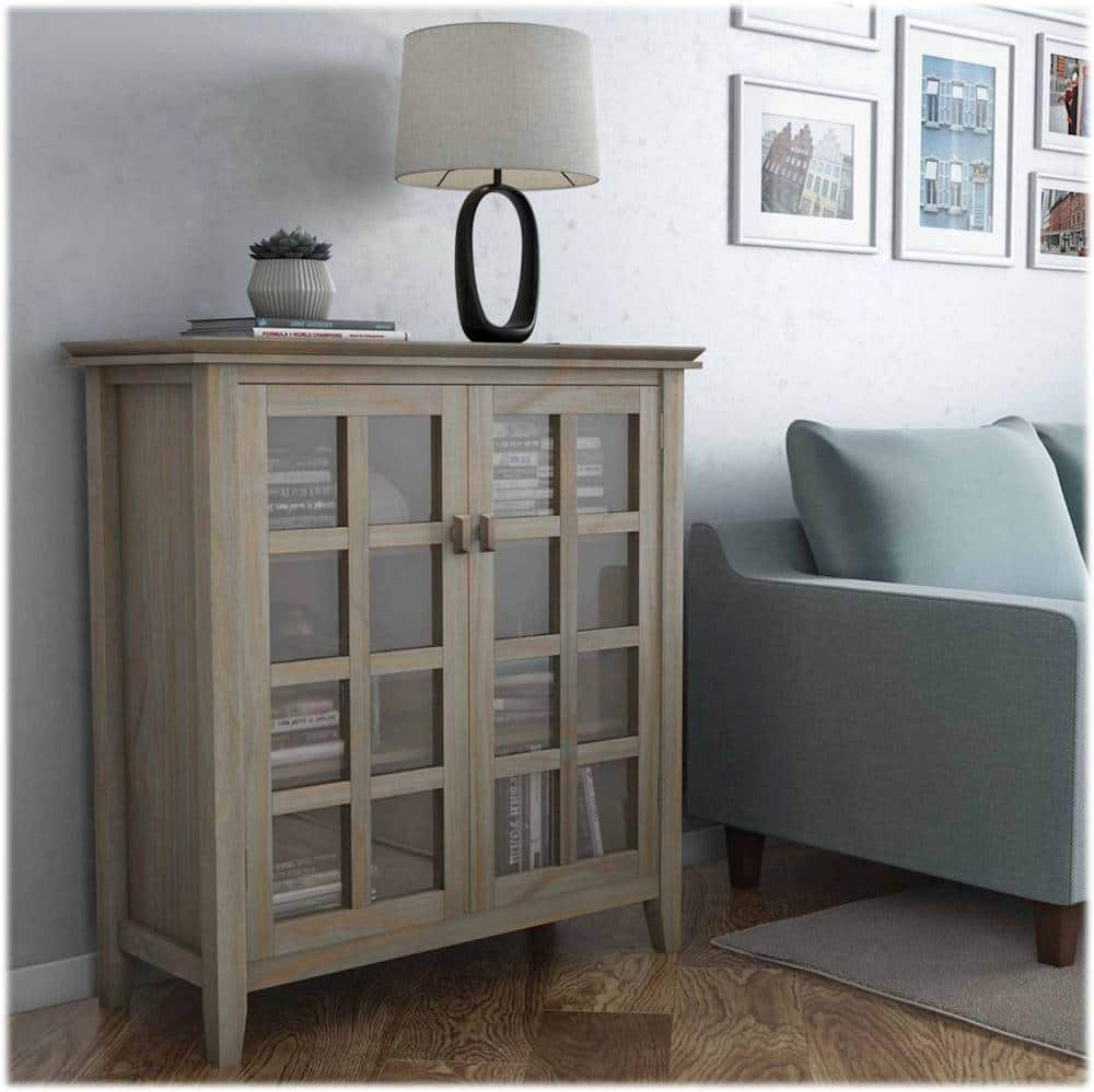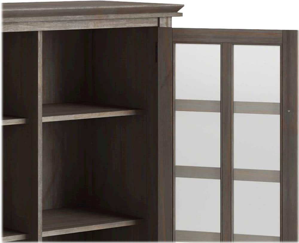 - A:Answer The cabinet has four adjustable shelves that allow you to reconfigure the layout to suit your needs.