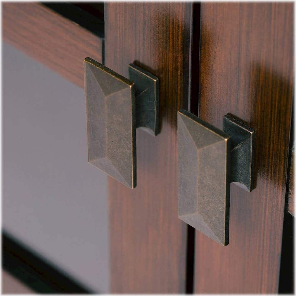 - A:Answer The cabinet has four adjustable shelves that allow you to reconfigure the layout to suit your needs.
