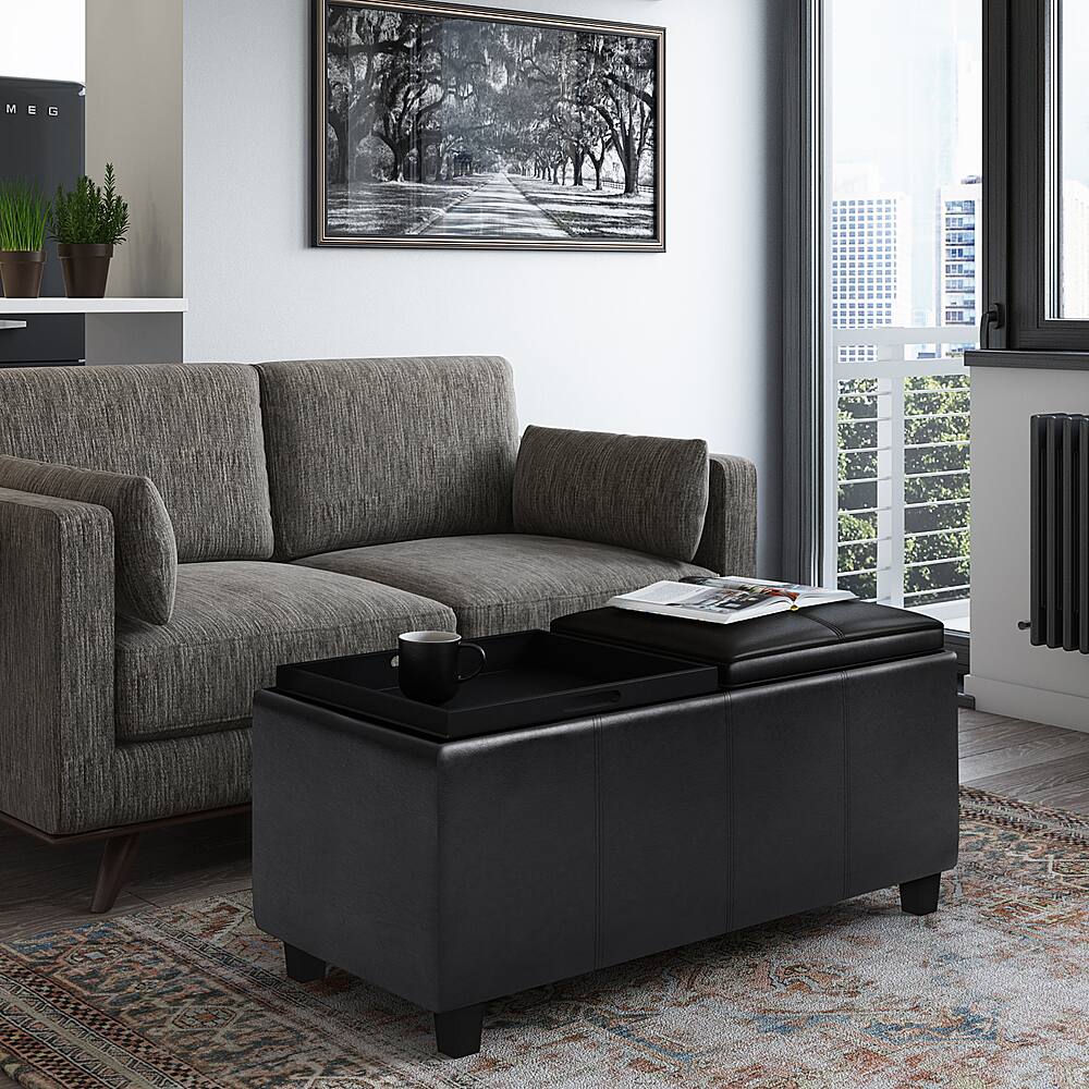 - A:Answer The Avalon Storage Ottoman comes with two flip over serving trays.