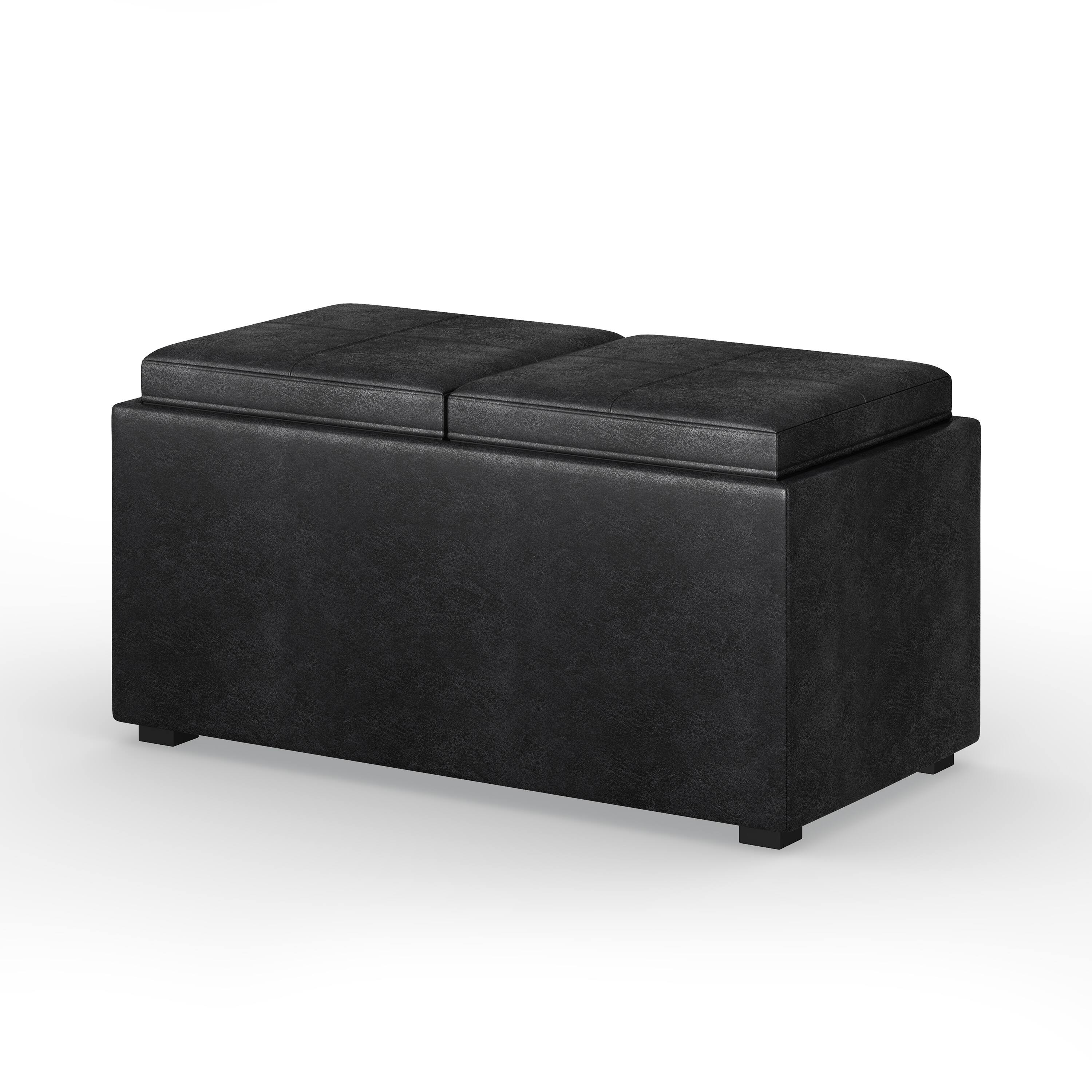 - A:Answer The serving trays that come with the Avalon 5 Piece Storage Ottoman provide a convenient surface for eating.
