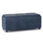 - A:Answer Dear customer, Thank you for inquiring about our Simpli Home Cosmopolitan Storage Ottoman. The dimensions of the ottoman are as follows- Width-33.5" Inches Depth- 17.3" Inches Height- 18.5" Inches The color of the item is Soft blue more like aqua. Please feel free to write us if further information about this product is needed. Thanks again