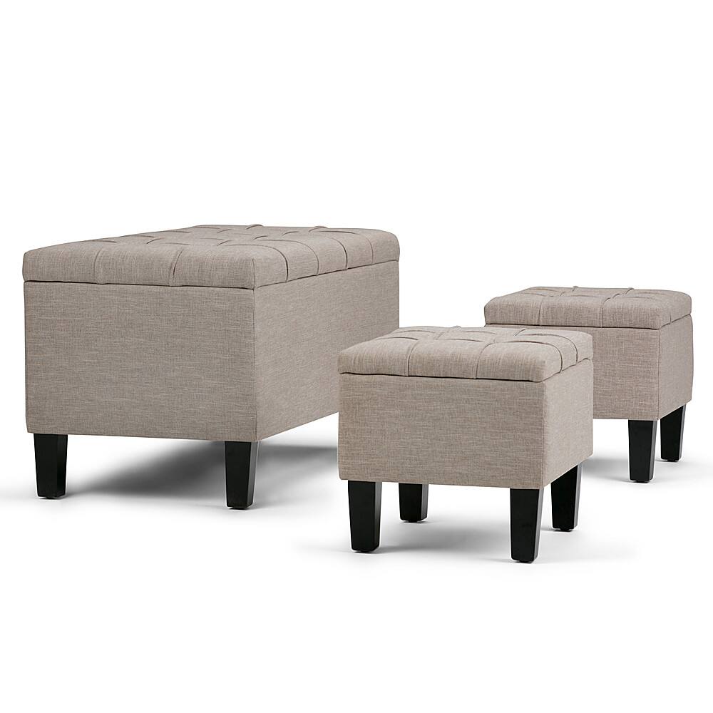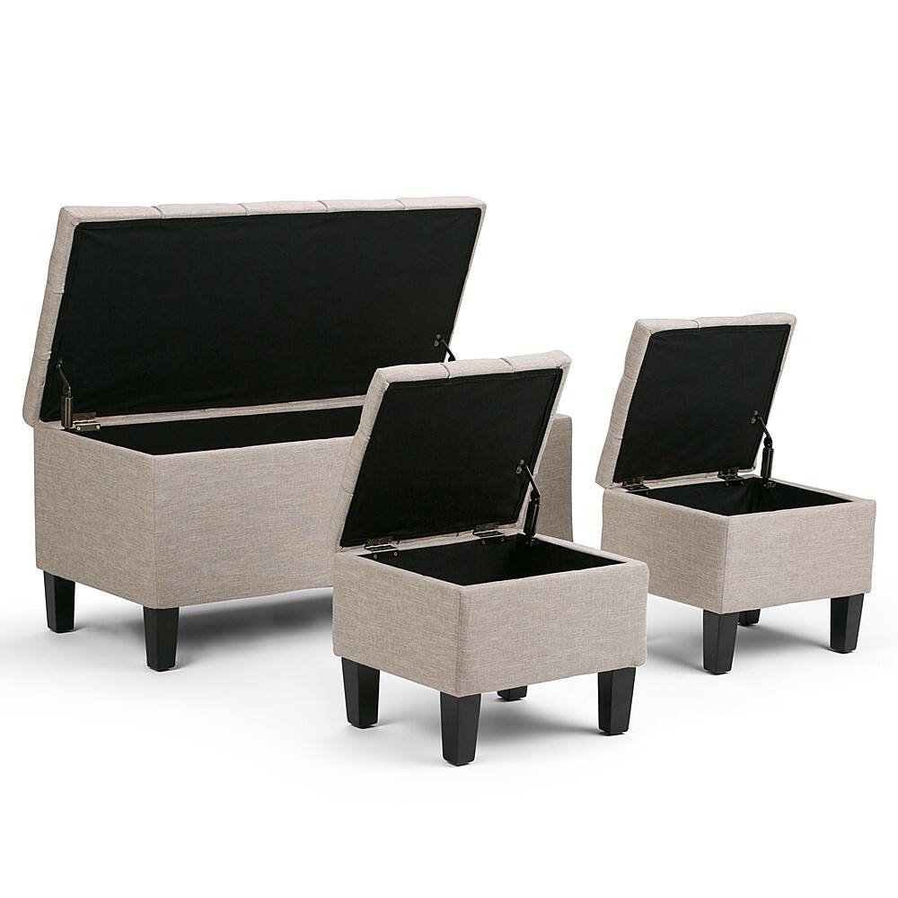 - A:Answer Dear customer, Thank you for inquiring about our Simpli Home Dover 3 Piece Storage Ottoman. We would like to inform you that the weight capacity this Ottoman is 250 Pounds for large Ottoman and 150 Pounds for small Benches. Please feel free to write us if further information about this product is needed. Thanks again.