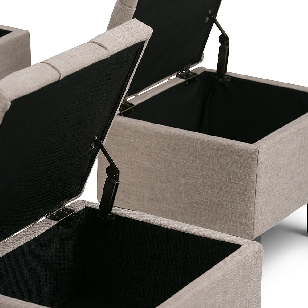 - A:Answer Hello, The dimensions are,large ottoman,D 19.5",W 44.1" and H 20.1". Small ottomans,D 15.5",W 17.5" and H 15.5". Simpli-Home, Tom