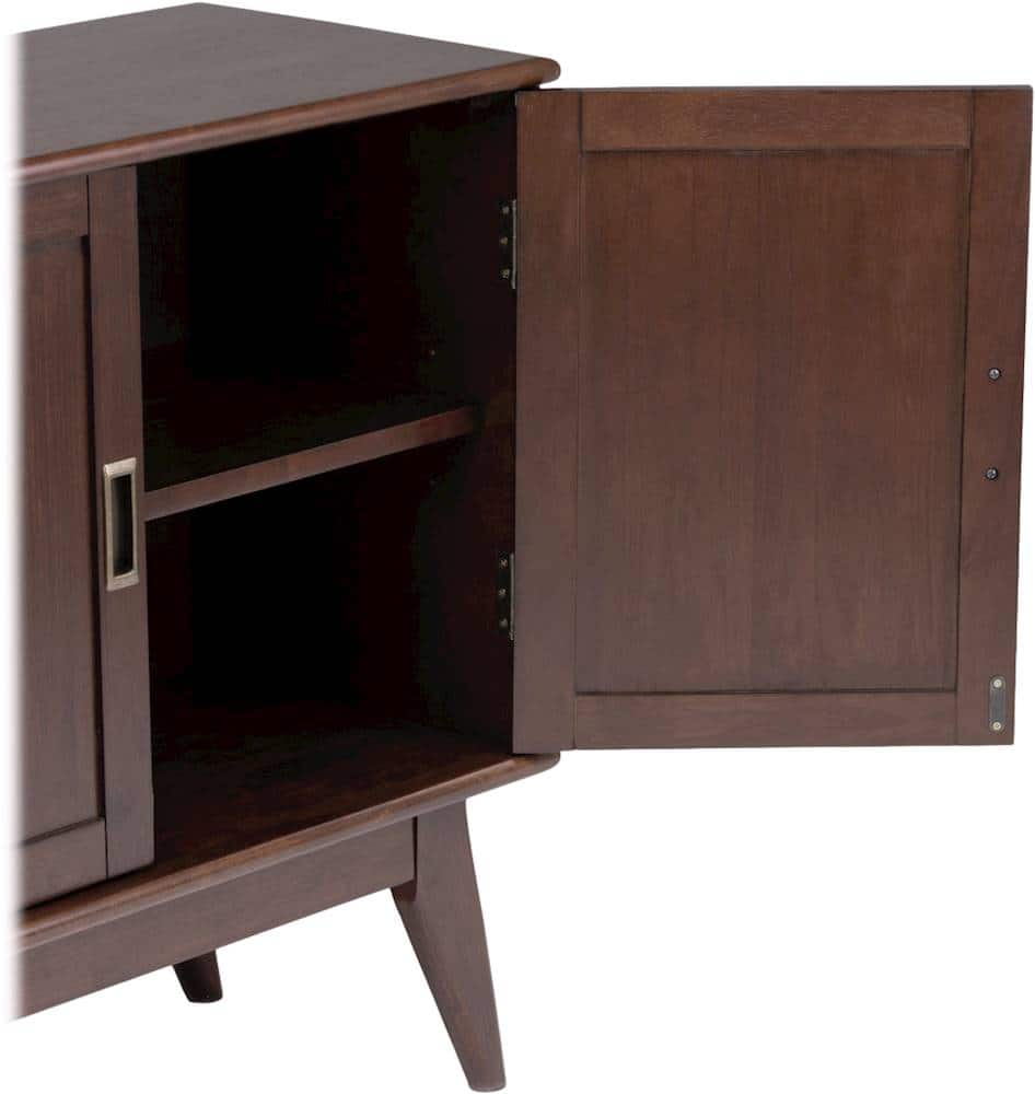 - A:Answer The product weight of the Simpli Home Draper low storage cabinet is 55 pounds.