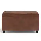 This question was asked about the related product: Simpli Home - Harrison 36 inch Wide Transitional Square Coffee Table Storage Ottoman in Tanners Brown Faux Leather - Tanner's Brown