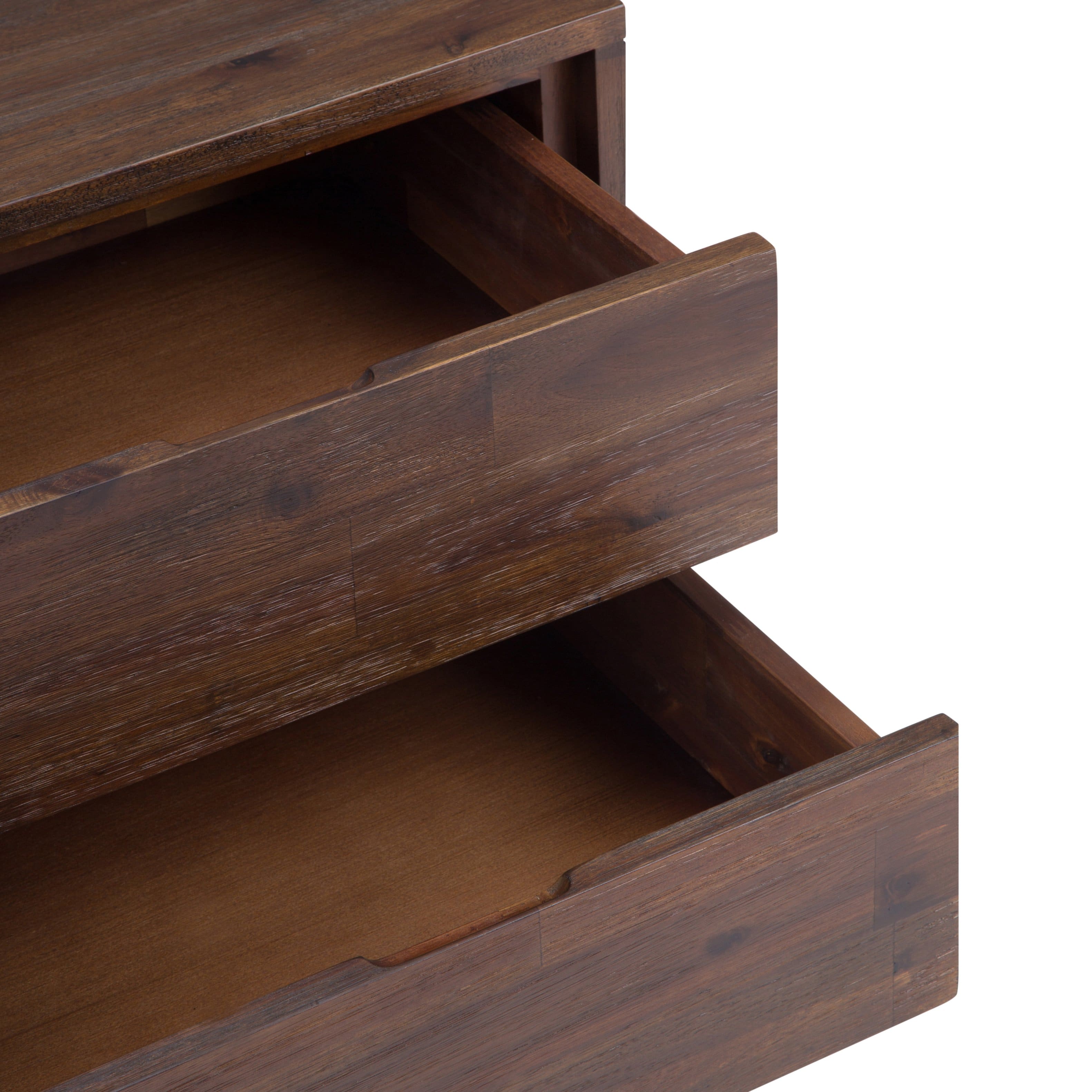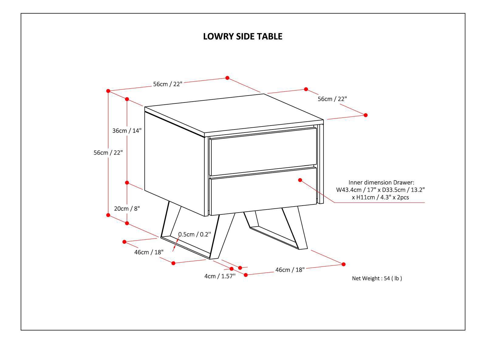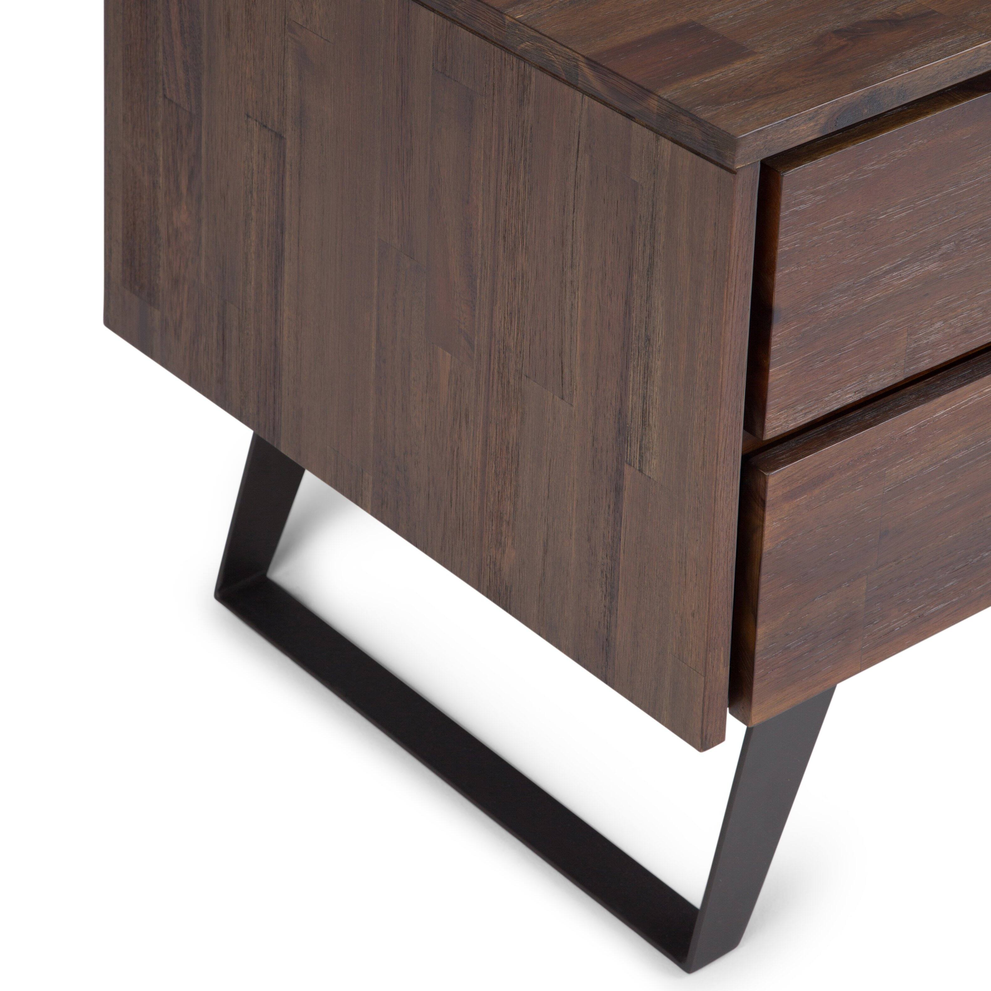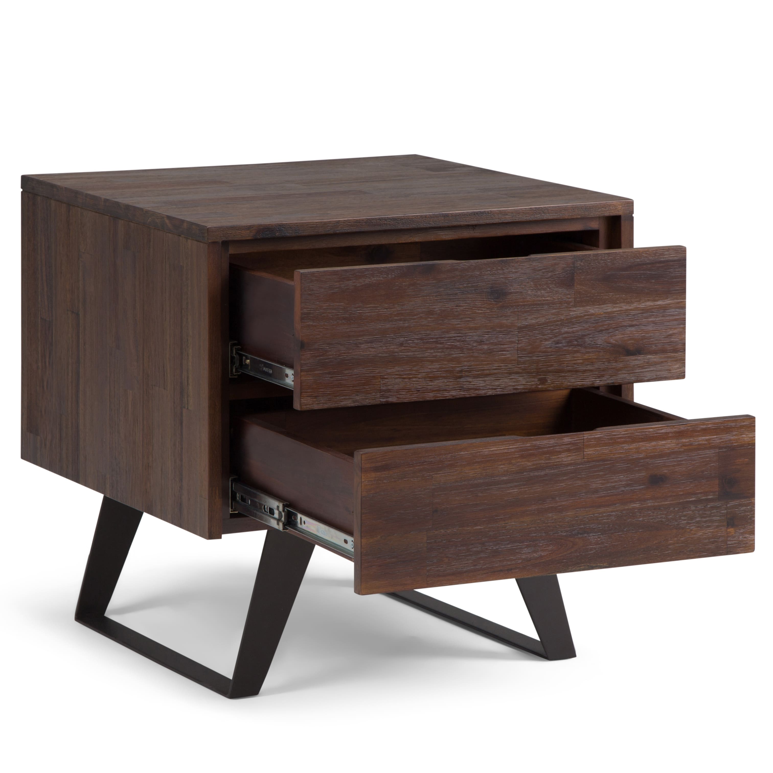 - A:Answer The Lowry Side Table features one drawer with metal drawer glides and one open compartment for storage.