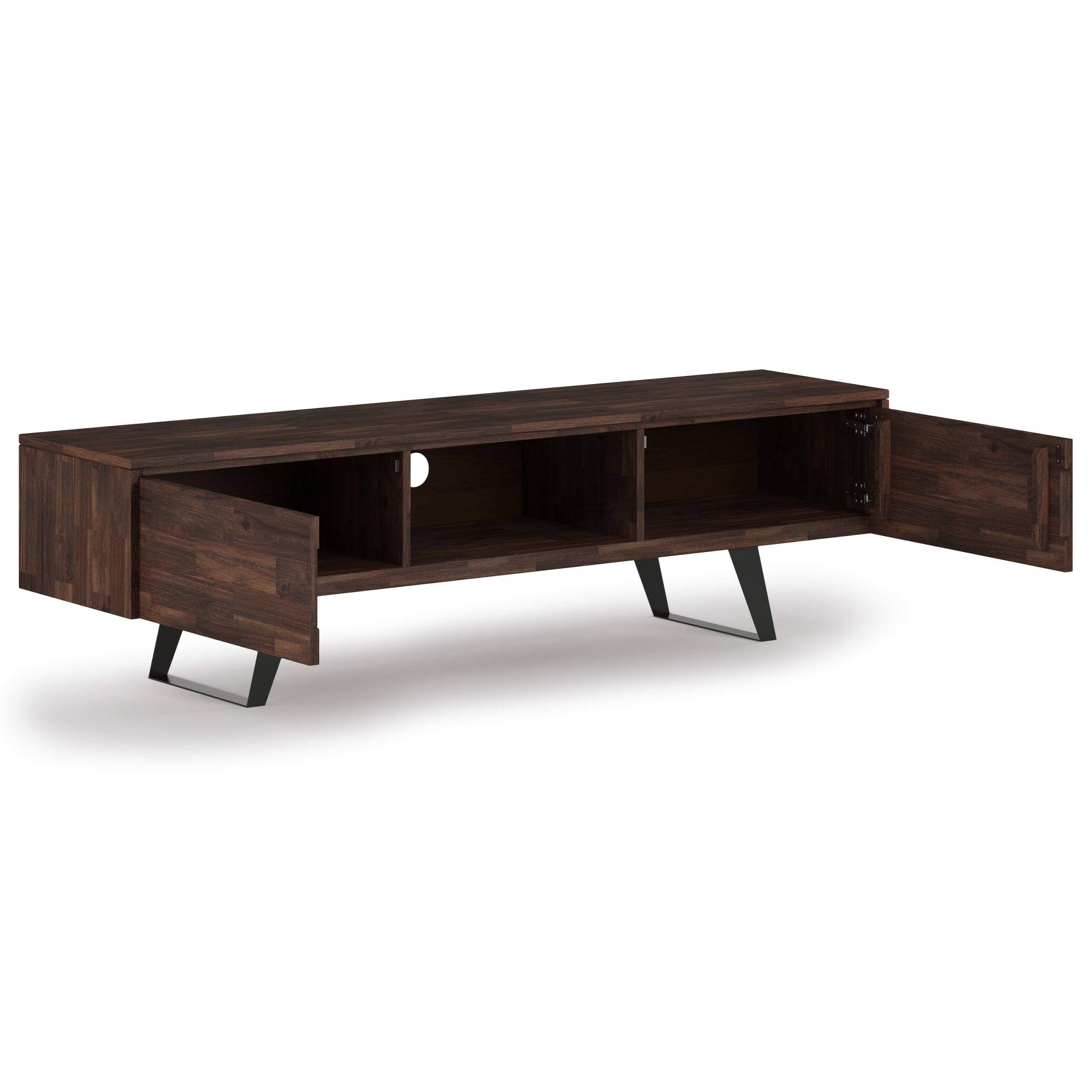- A:Answer The Lowry TV stand is handcrafted with care using the finest quality solid acacia hardwood and metal.