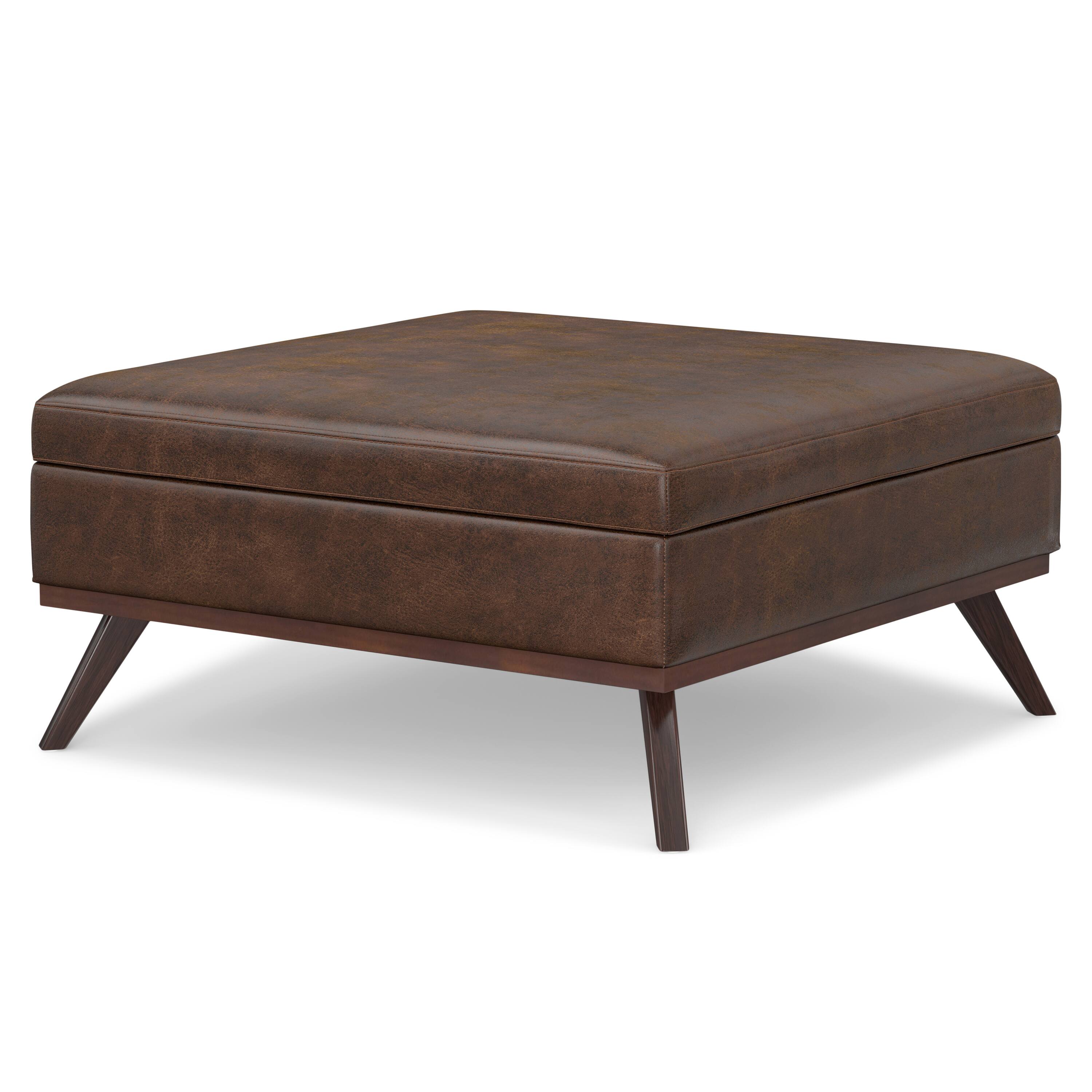 - A:Answer The Owen Mid Century Large Square Coffee Table Storage Ottoman has a large interior storage space.