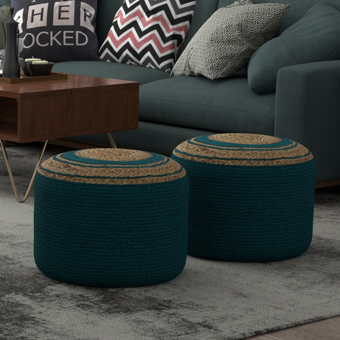 - A:Answer The Serena Round Braided Pouf is made of upholstery.