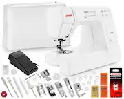 - A:Answer The Singer Quantum Stylist model 9960 sewing machine comes with the following accessories in the accessory compartment located in the removable extension bed of the machine: Zipper Foot, Buttonhole Foot, Satin Foot, Blind Hem Foot, Open Toe Foot, Cording Foot, Darning/Embroidery Foot, Even Feed/Walking Foot, Overcasting Foot, Button Sewing Foot, Narrow Hem Foot, Quarter Inch Foot, Quilting Bar, Pack of Needles, Bobbins (Class 15 transparent), Seam Ripper/Lint Brush, Auxiliary Spool Pin, Spool Pin Felt, Thread Spool Caps and Screwdriver. The Large Extension Table and Hard Dust Cover along with the foot control and power cord are in the box with the sewing machine.